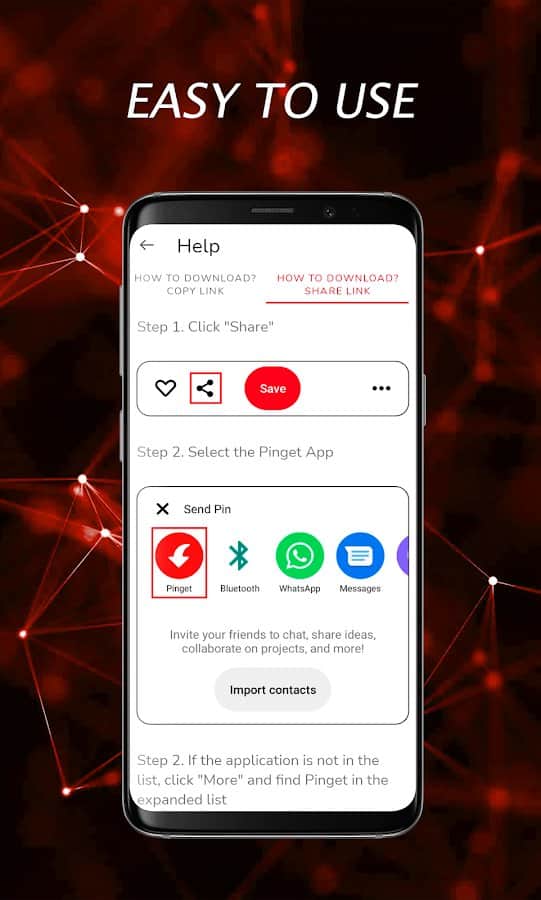Скачать видео с пинтереста - так как Pinterest является основным источником вдохновения и мотивации, листая его есть возможность найти большое количество цепляющих изображений или видео, которые захочется скачать на свой телефон. Внутри платформы это сделать немного сложно, поэтому благодаря этому приложению вы можете легко и быстро вытянуть источник. Достаточно только скопировать ссылку на необходимую работу, вставить её в определенное место и скачать GIF, фото, альбом, историю или видео. Будьте готовы к тому, что для входа нужно ввести логин и пароль от аккаунта.