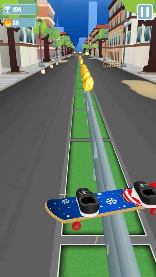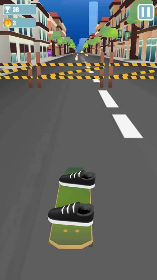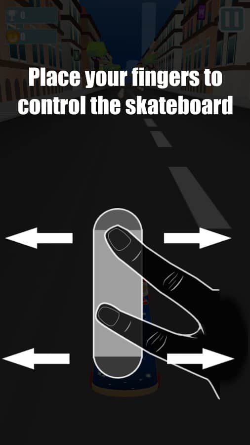 Skate Surf – раненр на андроид, где вам предстоит взять под свой контроль скейтборд. В этой игре вы будете управлять скейтбордом, используя для этого свои два пальца. Пока ваши пальцы на доске вы сможете маневрировать в бесконечном потоке машин и препятствий, для совершения прыжка снимите пальцы с доски. Прокладывайте себе путь по оживленным дорогам и перепрыгивайте препятствия и лужи, а также не забывайте собирать золотые монетки, которые вы сможете потратить на приобретение новых стильных досок. Играйте в эту игру и проверьте на деле свою отличную реакцию и скорость.