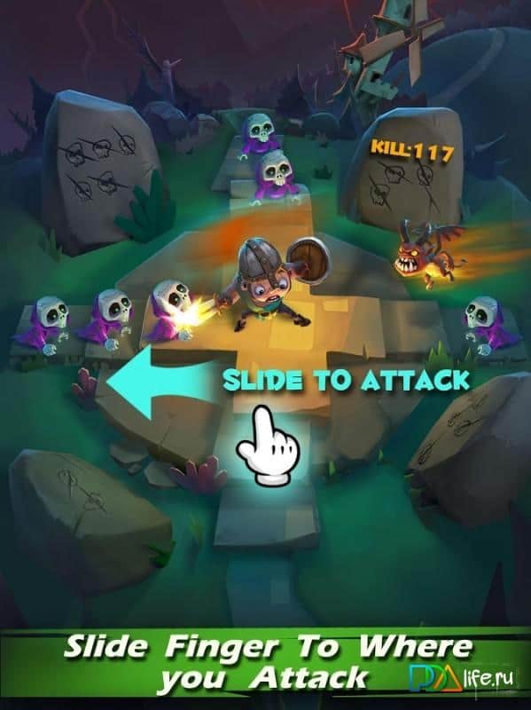 Skeleton Attack – динамичная игра на андроид, где вы возьмете под свой контроль отважного рыцаря, которому предстоит противостоять армии скелетов. Наш рыцарь попал в ужасный мир, где его не ждет не чего хорошего кроме скелетов и чтобы противостоять армии нечисти ему нужна ваша помощь. С помощью простого управления уничтожайте скелетов нападающих на вас со всех сторон и не дайте им прикоснуться к вам иначе игра для вас закончиться. Игра порадует вас симпатичными монстрами, простым управлением с помощью одного прикосновения и возможностью апгрейда главного персонажа. По ходу игры накапливайте гнев и выбрасывайте его в качестве разрушительных молний.