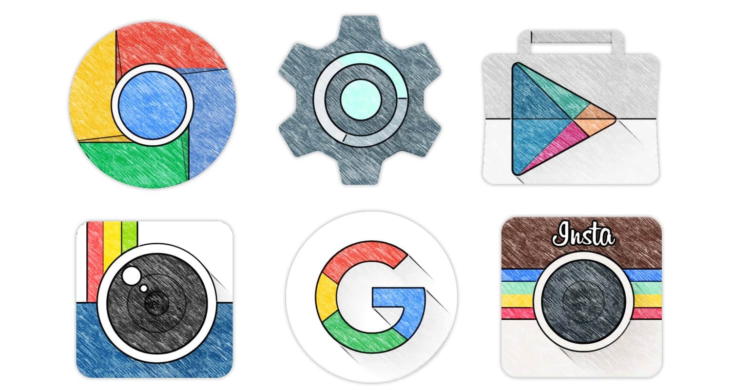 Sketchy - Icon Pack - Красочный набор иконок для вашего рабочего стола. Все они весьма уникальны, ведь выглядят так словно нарисованы карандашом. Смотрятся очень красиво, и красочно, с ними вы всегда сможете украсить экран вашего смартфона новыми цветами. Здесь можно найти иконку практически для любого приложения, включая не стандартные. Используйте готовые наборы, или же создайте свой собственный, заменяя иконки поштучно.
