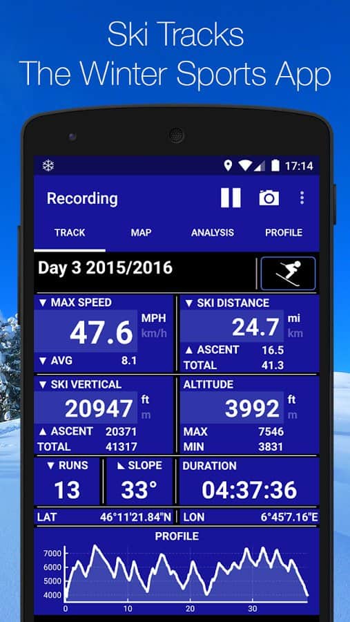 Приложение Ski Tracks является заслуженной и популярной программой для зимних лыжных тренировок на снежных склонах. Множество спортсменов со всего мира с удовольствием им пользуется и делятся своими достижениями с друзьями и близкими. Основные функции:
