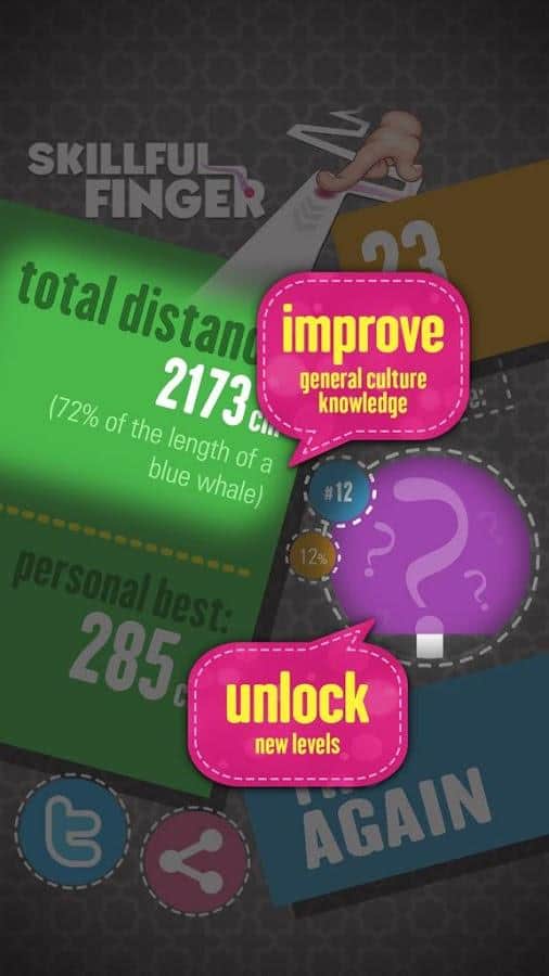Skillful Finger – управляйте шариком с помощью пальца и проведите его через все испытания игры. Прикасайтесь к экрану пальцем и управляйте шариком единственной задачей которого будет преодолеть все преграды на своем пути и избегать столкновения со сторонами. Выбирайте подходящий для вас шарик и комбинируйте его с хвостами на выбор. Сравнивайте свои результаты с другими игроками или друзьями и устанавливайте рекорд. С каждым новым пройденным уровнем сложность игры будет постепенно увеличиваться. Проходите все динамичные барьеры на своем пути и тренируйте свою ловкость пальцев.