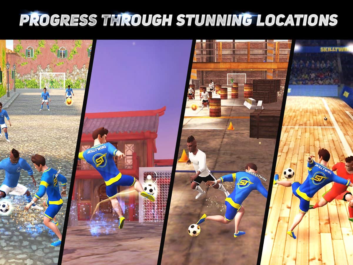 SkillTwins Football Game 2 – продолжение популярной спортивной игры на андроид, где вы будете управлять футболистами. В этой игре вы возьмете под свой контроль двух футболистов и проведете их по многочисленным уровням игры, путешествуя по различным мирам. Применяйте все свои навыки и ловкость пальцев, ведя нападающего через многочисленные преграды и противников к намеченной цели. Посетите такие страны как: США, Китай, Австралия, Малайзия, Египет, Италия и многие другие и откройте для себя самые неожиданные футбольные площадки. Забивайте голы в ворота противника и соревнуйтесь с другими игроками за лучшие результаты в этой игре.