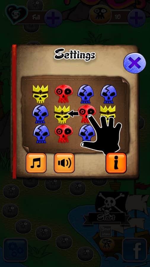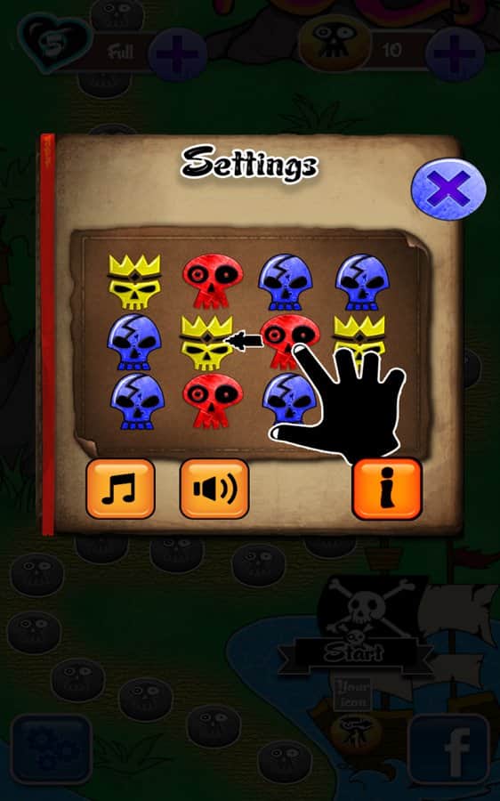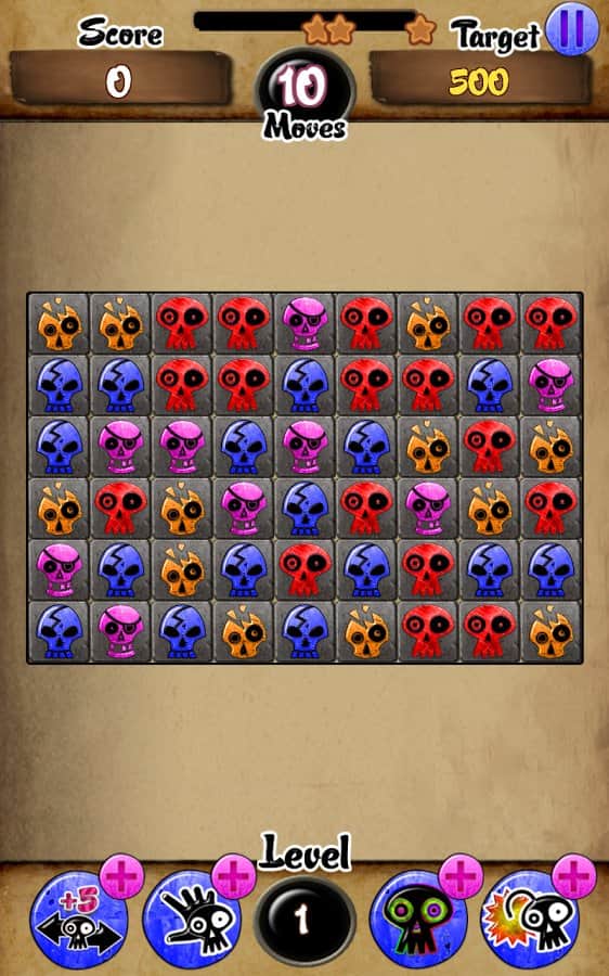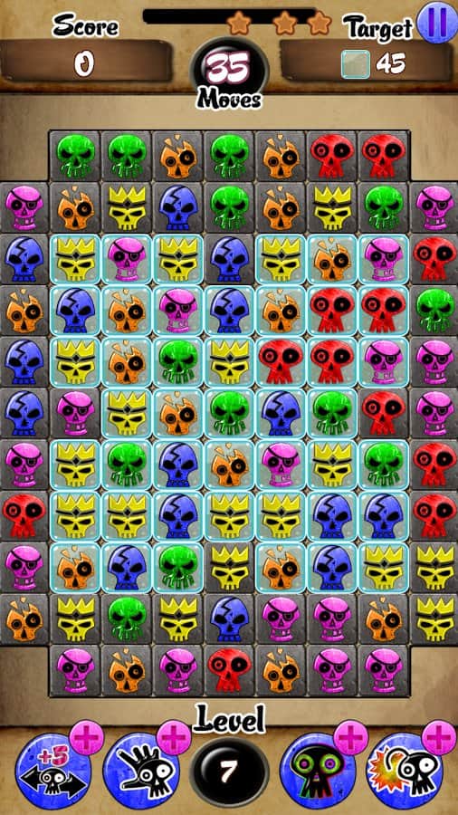Skull Candy Match – Игра из жанра «три в ряд» на пиратскую тематику. Издавна всех людей манили рассказы о несметных сокровищах. Многие отправлялись на их помощь, но их ждала смерть. Столетиями черепа копились на далёком острове и их стало так много, что с их помощью можно было ставить различные ловушки на пути к кладу. В игре вам необходимо выстроить черепки одного вида в одну линию, после чего они исчезнут. Прокладывайте себе маршрут по острову там где ещё пираты ходили и искали место для захоронения огромного количества несметных богатств клада.