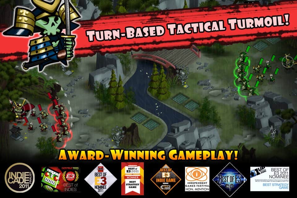 Skulls of the Shogun - Увлекательная пошаговая стратегя на андроид. Игра расскажет о приключениях генерала Акамото в царстве мертвых. Оказывается, и там есть свои правила! Вам нужно отстоять очередь в зал суда, которым правит самозванец-генерал Акамото. Теперь он пытается убить настоящего генерала, чтобы остаться не раскрытым. Так же не забывайте кормить своих солдат черепами врагов. От этого их жизни, атака, и защита увеличиваются.