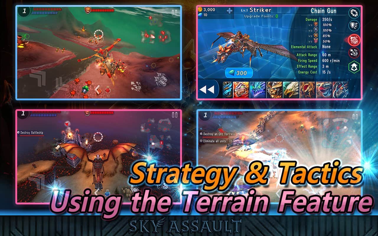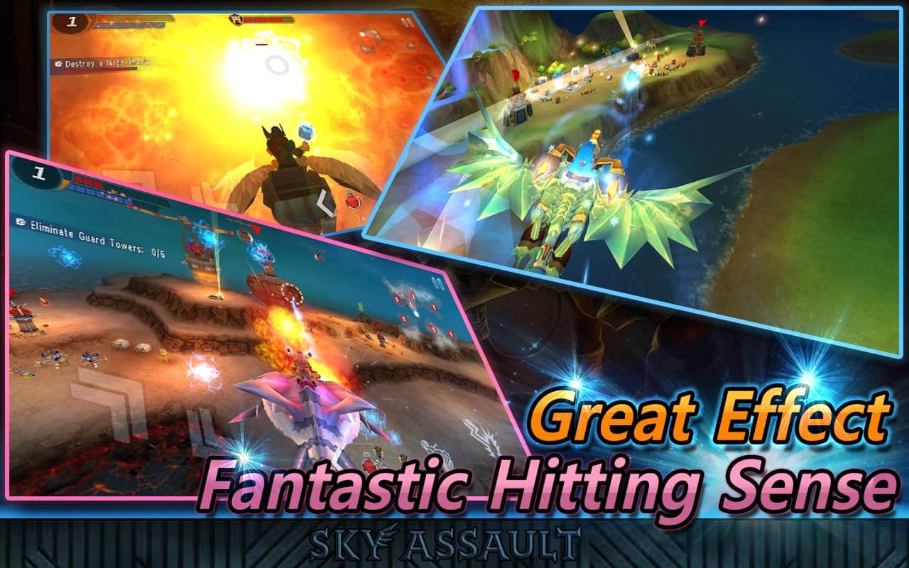 SKY ASSAULT: 3D Flight Action – парите в небе на огромном драконе или птице и охраняйте сказочное королевство от врагов. Летайте над различными локациями игры и исследуйте каждый уголок огромной вселенной, уничтожая врагов с помощью современного оружия. Тщательно продумывайте свою стратегию ведения боя и учитывайте рельефы местности, чтобы уничтожить врага меньшими усилиями. Парите на драконе, огромной птице и фантастическом летательном аппарате, проверяя в действии каждый из них. Выбирайте себе подходящего героя, каждый из которых обладает уникальными способностями и оружием. Выполняйте все захватывающие миссии по уничтожению врага и наслаждайтесь качественной графикой.