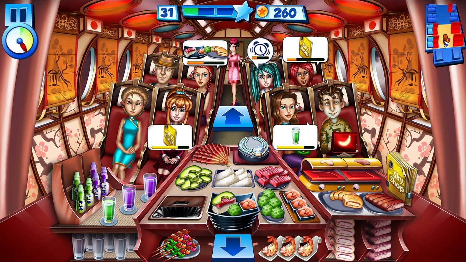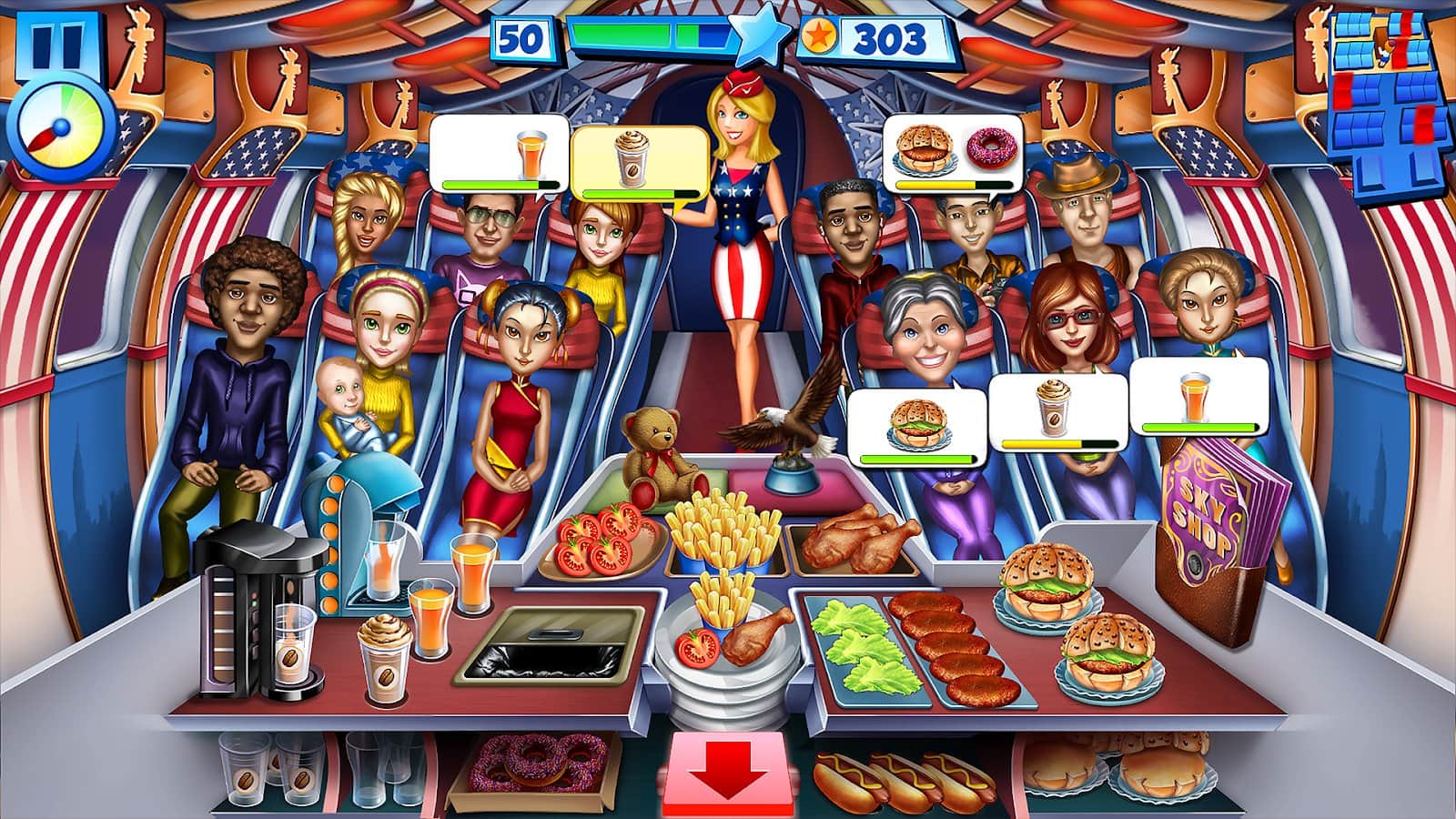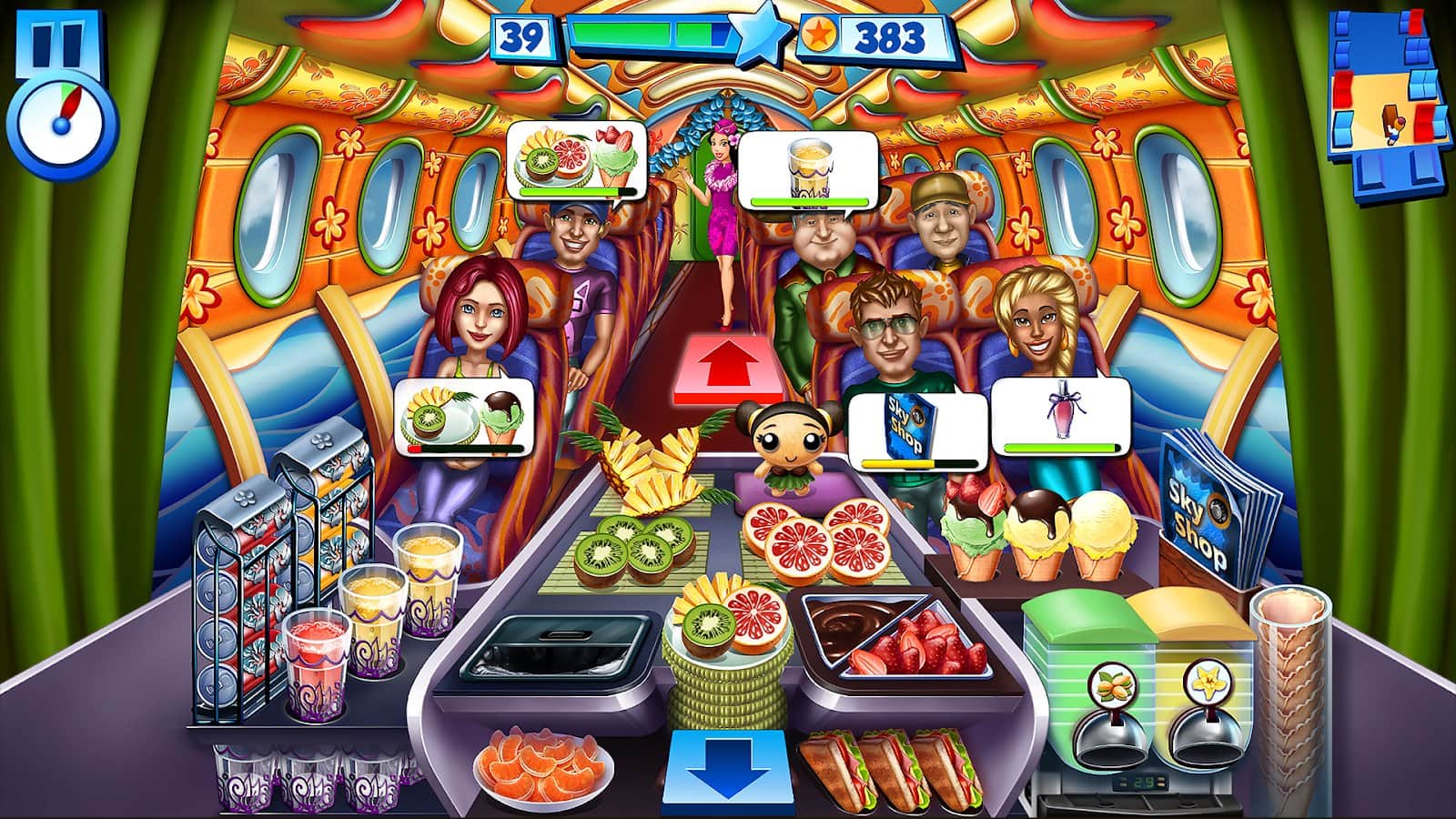 Sky Crew – аркада на андроид, где вы будете выступать в роли стюардессы. В этой игре вы будете путешествовать по всему миру на борту пассажирского лайнера и выполнять заказы пассажиров. Станьте лучшей стюардессой этой игры и добейтесь невероятных результатов. В ваши обязанности будет входить отвечать за комфорт и безопасность своих клиентов делая все возможное чтобы они остались довольны полетом. Готовьте вкусные блюда и подавайте их пассажирам, а также разносите напитки. Получайте награды за хорошую работу и открывайте для себя новые маршруты. Всего в этой игре представлено 17 локаций, красочная графика и симпатичные персонажи.