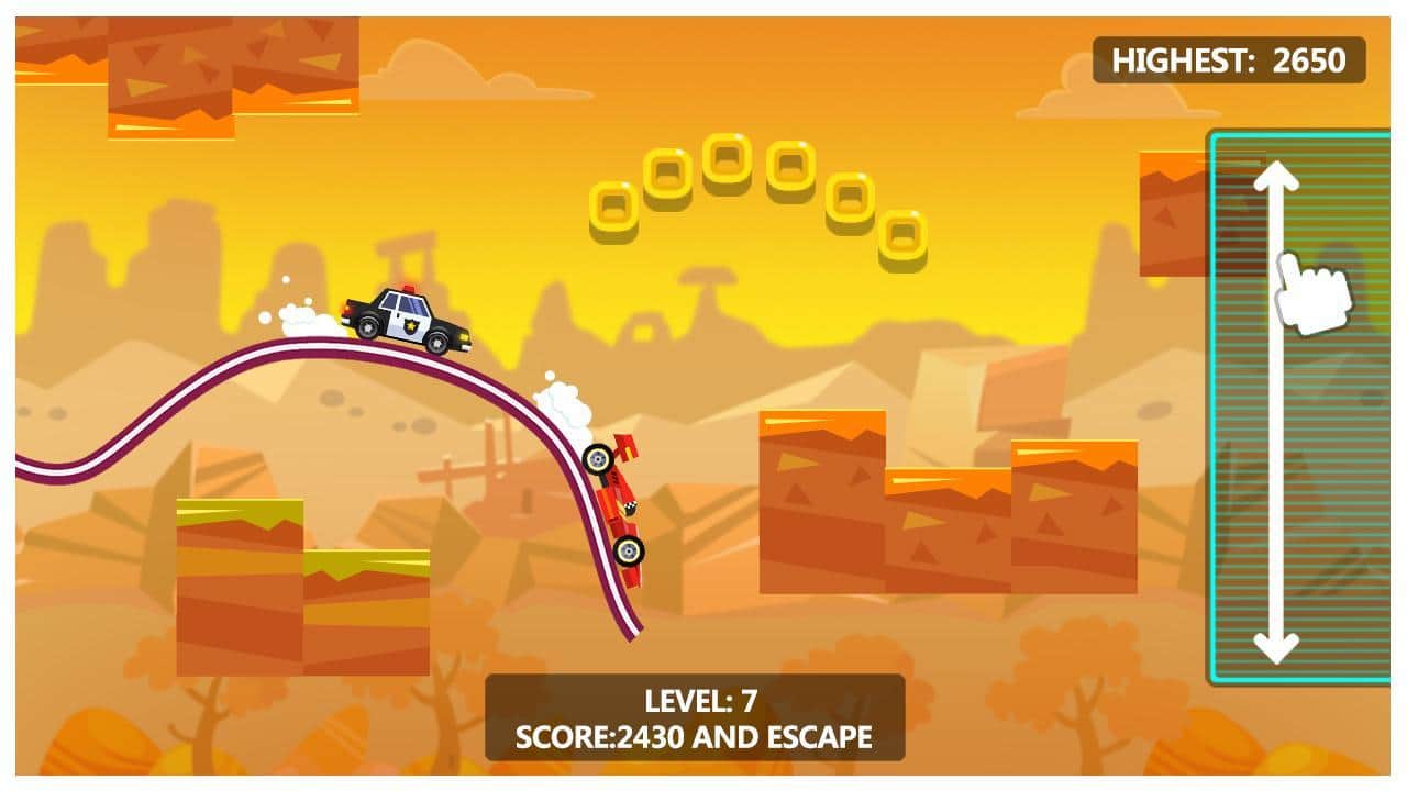 Sky Escape - Car Chase – динамичная гоночная аркада на андроид, где вы будете уходить от полицейской погони. В этой игре вы будете управлять автомобилем и гонять по постоянно меняющимся трассам, висящим в воздухе. Ездите на огромной скорости по извилистым трассам и по пути собирайте монетки и бонусы. Начните свое приключение прямо сейчас и добейтесь отличных результатов в игре. Набирайте достаточное количество очков и открывайте для себя новые автомобили, которые порадуют вас своей уникальностью. Открывайте для себя новые трассы и установите свой рекорд.