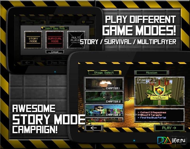 Skycraft 3D - Butter Gun - Очередной шуттер от третьего лица на андроид в стиле Майнкрафта. Теперь на очереди космические приключения. Игра выполнена по принципу выживания. Вы один в локации, должны отстреляться от нападающих на вас монстров. Но и режим прохождения тоже в игре присутствует. В ней содержится пять этапов, которые расскажут вам эпический сюжет игры.