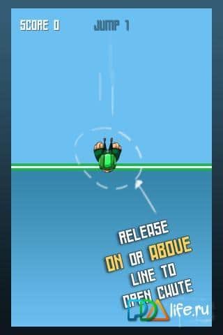Skydiver Drop Zone - очередной и очень неплохой тайм киллер на Андроид. Забавный мультяшный парашютист пытается приземлиться в назначенную точку. И сделать это не просто, несмотря на легкость поставленной задачи. Итак, вы садитесь в ваш самолет-кукурузник, набираете нужную высоту - и....свободный полет просто завораживает!!! Однако не увлекайтесь! Ведь у вас важная задача - приземлиться не просто живым и где-нибудь, а очень живым и в конкретной точке! Падая, вы набираете очки. И чем ближе вы к точке посадки, тем больше очков получите. Помните только, что если вы раскроете купол своего парашюта слишком быстро, то наберёте небольшое количество очков, а если чересчур промедлите – разобьётесь о землю. Управление - сенсорное и достаточно легкое. Его суть заключается в том, что после нажатия на сенсор, парашютист начинает стремительно падать вниз, набирая очки. Как только вы убрали палец – парашют раскрылся. Вот и все премудрости!