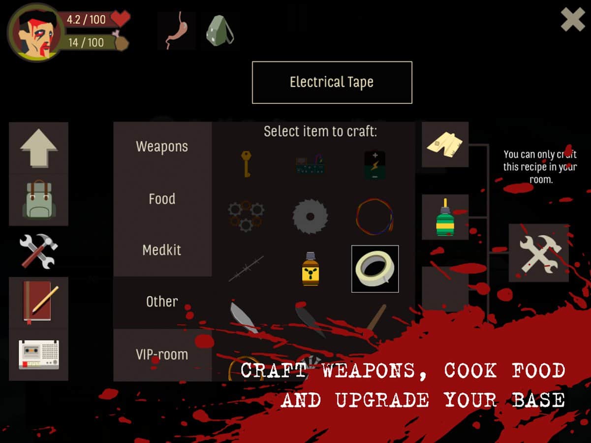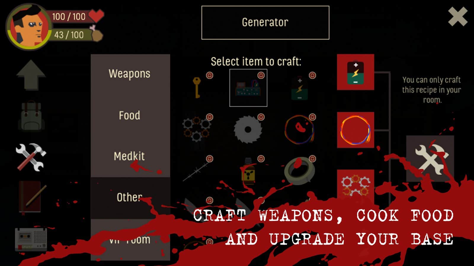 Игра классное в игре даёт тебе выбор действий например ты можешь атакавать врага и собирать какие нибудь еду или вещь для Крафта оружии или не сражаться чтобы не умереть или минимум не потерять за и еду ищо сюжет хароший изо с малым весом это игра сайдет на ура даже на слабых андроид устройств кароче 10 из 10