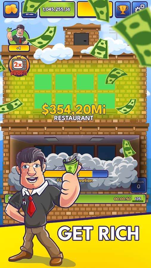 Skyscraper Money: Pocket Tower Builder Idle Game - Составьте договор со строителями и начните создавать восхитительное здание, куда будут сходиться все туристы! Больше 100 этажей наполнятся разными бизнесами: кафешками, ресторанами, компьютерными, прачечными, музеями, ремонтами одежды, бакалейями, отделениями больницы, музыкальными студиями и даже пончиковые. Чем больше этажей появляется на горизонте - тем выше заработок и популярность в городе. Объединяйтесь с друзьями и постройте небоскребы прямо к космосу. Ну или просто попытайтесь добраться туда.