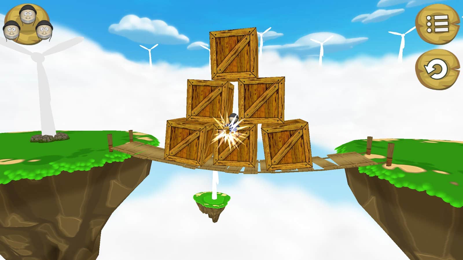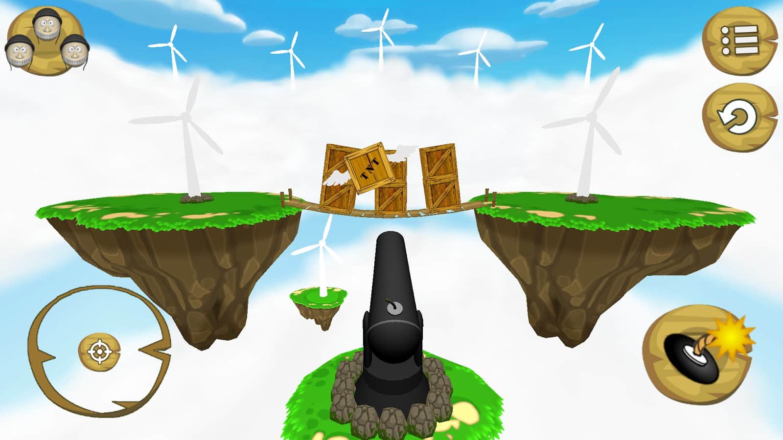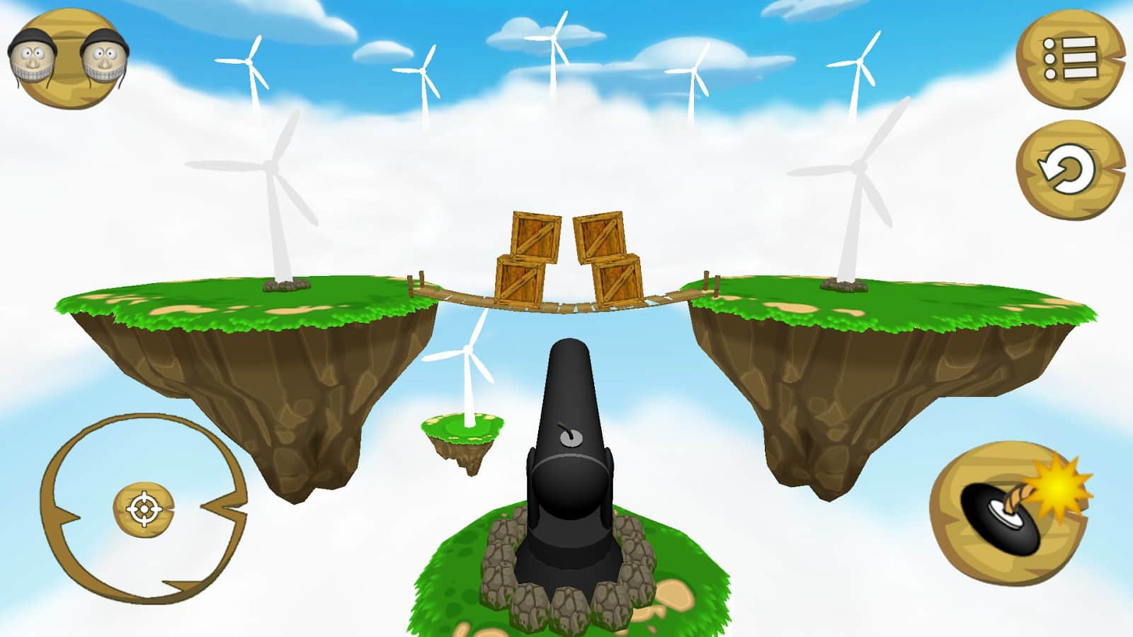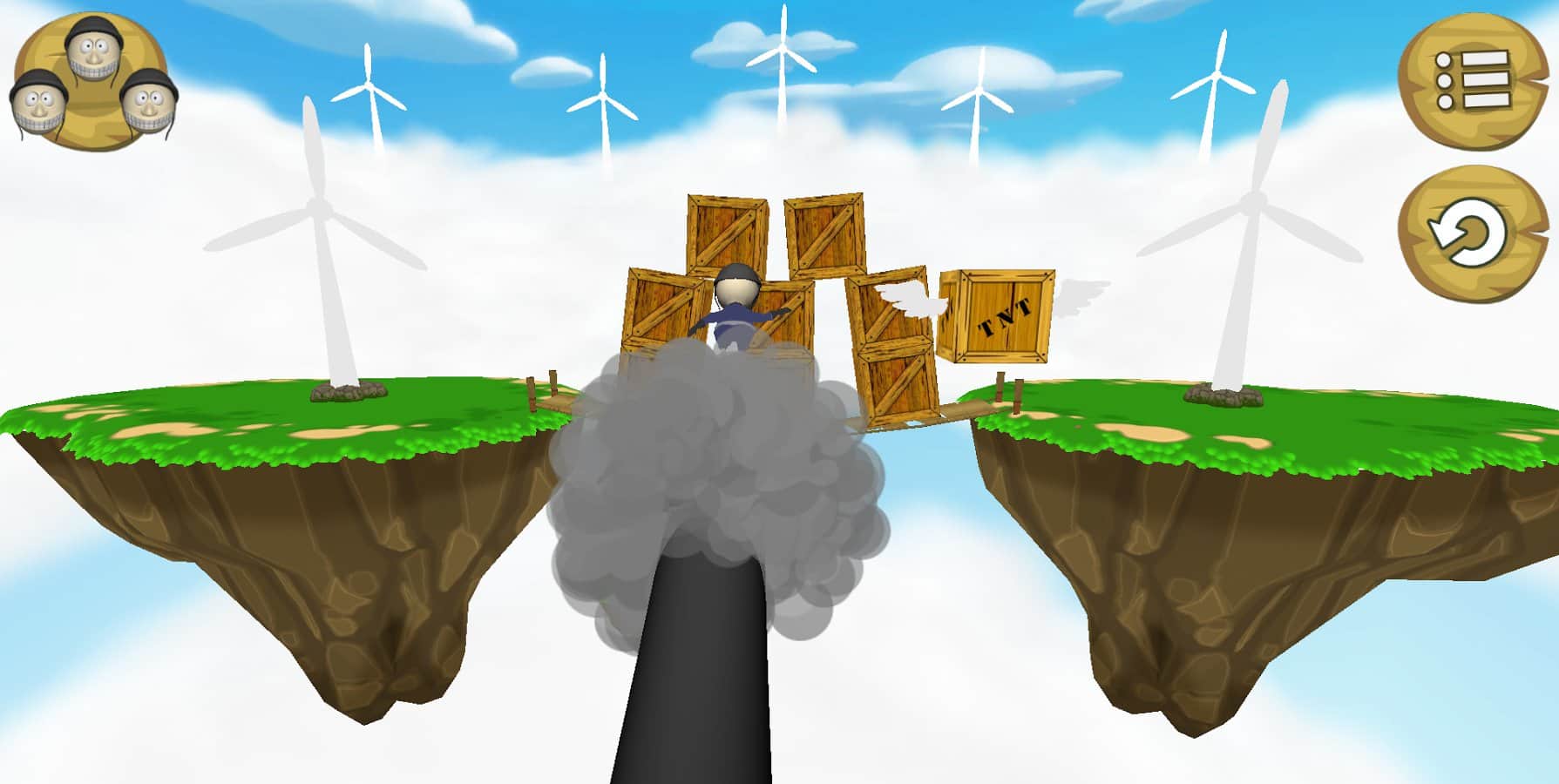 Skyshot! – стреляйте из пушки заряженными туда человечками и сбивайте коробки. Это веселая игра на андроид, где вам предстоит заряжать пушку человечками в касках и стрелять ими по мишеням. Все действия этой игры будут происходить на небесах, так что наводите пушку на мишень с точностью, чтобы не расходовать снаряды. С каждым новым уровнем сложность игры будет увеличиваться и добавляться больше коробок, в том числе и ящики с динамитом, попав в которые вы взорвёте всю конструкцию и автоматически пройдете на следующий уровень. Играйте в эту игру и повеселитесь от души.