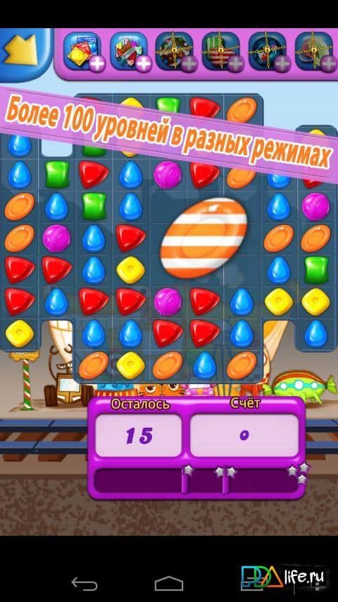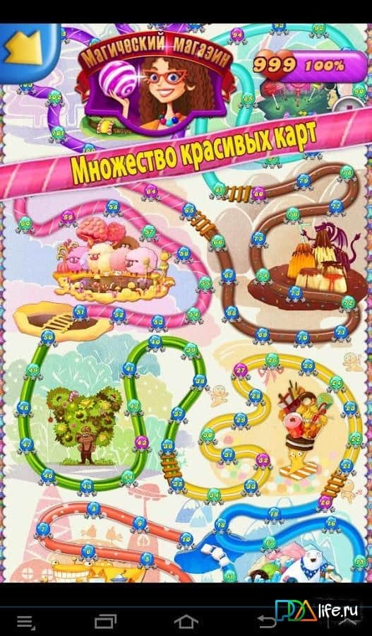 Сладкий путь: Sweetland trip - увлекательная головоломка для андроид в стиле "три-в-ряд". НА этот раз будет сладко! Ведь перед вами не просто элементы, а конфетное путешествие в мир сладостей! Геймплей классический - собираем не менее трех конфет одного цвета рядом. Есть и сладкие бонусы, и задания, и разные режимы игры, а также возможность игры с друзьями! Отличный способ скоротать ожидание и развлечься!
