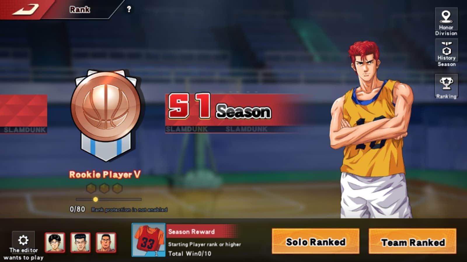 Соберите команду из крутых персонажей японского аниме SLAM DUNK и отправляйтесь на чемпионаты по баскетболу, чтобы покорить мир своей игрой! Выбирайте персонажей, надевайте стильную форму и сражайтесь, вытворяя невероятные трюки на поле. Чем дальше будете кидать мяч - тем больше очков получаете. Старайтесь вовремя уворачиваться от соперников и играть командой, а не в одиночном режиме. Подбирайте удачные моменты для кидка, выбирайте правильную тактику передвижения по полю и прорвитесь от простой команды к чемпионам.