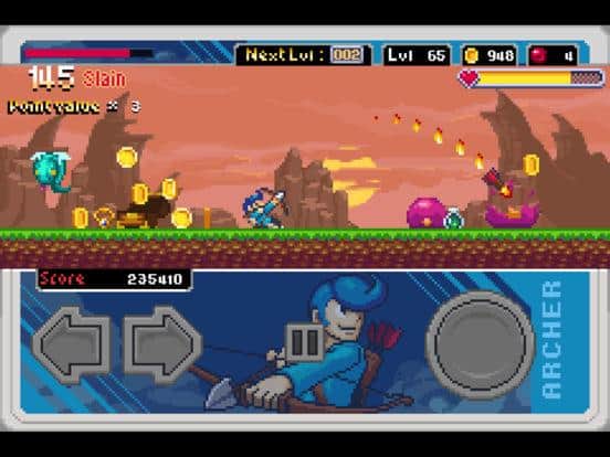 Slayin – RPG для IOS, где вы будете управлять отважным рыцарем который будет сражаться с многочисленными врагами. В этой игре вы будете для начала управлять одним героем и постепенно отрывать других, проходя опасные миссии. Ведите своего бойца вперед и сражайтесь с монстрами и боссами. Вашей главной задачей в этой игре будет направлять героя в нужную сторону, а все остальное он сделает сам. Получайте очки за победы над врагов и увеличивайте уровень своего героя. Иногда на уровнях будет появляться тролль, у которого вы сможете приобрести оружие и доспехи. Победите сильного босса и проходите на следующую локацию игры.