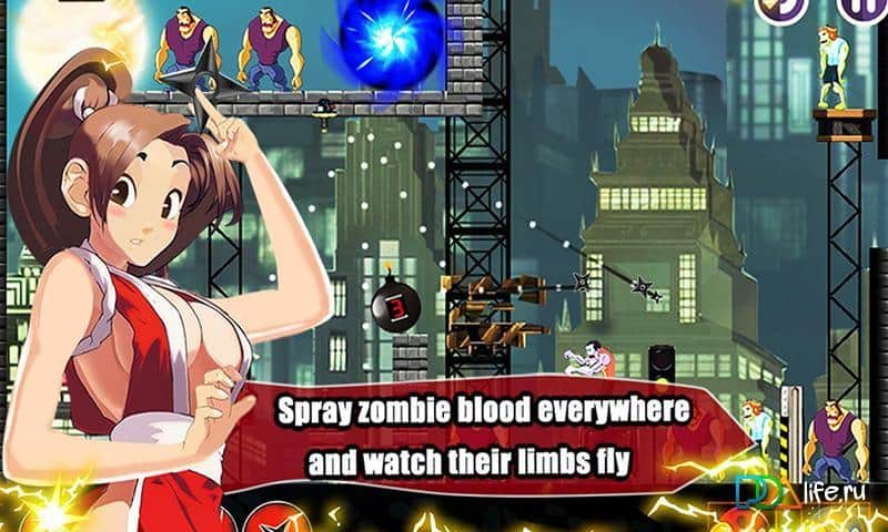 SLAYZ Ninja Kill Go Run Zombie - LAYZ вернулась на экраны ваших мобильных телефонов, для того чтобы убить надоедливых зомби, и стереть их с лица земли раз и навсегда. Игра представляет собой головоломку, в которой необходимо используя всего 3 звезды и благодаря им уничтожить всех зомби на уровне. В каждой локации разбросаны бомбы, которые непременно помогут вам справиться с ходячими мертвецами. С каждым новым уровнем сложность игры возрастает и для того чтобы пройти его нужно проявить всю свою смекалку и ловкость. Удачи в бою!