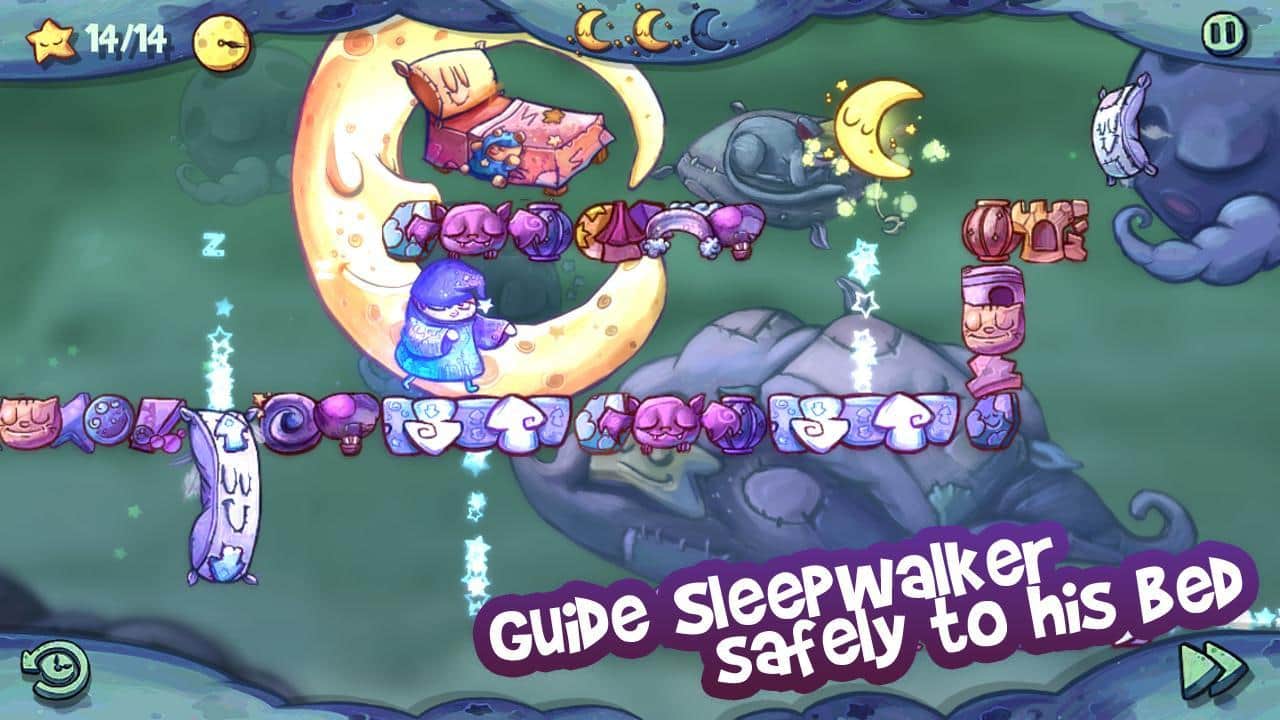 Sleepwalker's Journey - Отличный платформер на андроид, с красочной графикой. Вам предстоит прогуляться в увлекательных снах, из которых не может выбраться ваш герой. Вам предстоит пройти множество разнообразных уровней, прокладывая вашему герою дорогу. В каждом уровне вам нужно собрать как можно больше звезд, а затем найти выход.