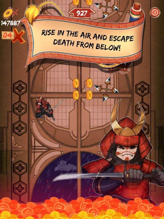 Slice and Rise – Возьмите под свой контроль самурая, который поднимается все выше по мистической башне и уничтожьте как можно больше врагов. Наш герой хочет как можно быстрее покинуть башню и для этого он совершает высокие прыжки, помогите ему в этом. Выбирайте точную траекторию прыжка и вовремя нажимайте на экран своего телефона или планшета, чтобы совершить прыжок. Обходите многочисленные ловушки и преграды у себя на пути и вступайте в схватку с врагами, поджидающими вас на каждом шагу. По пути не забывайте собирать многочисленные бонусы и усиления и получайте доступ к новым самураям, которые обладают уникальными умениями.