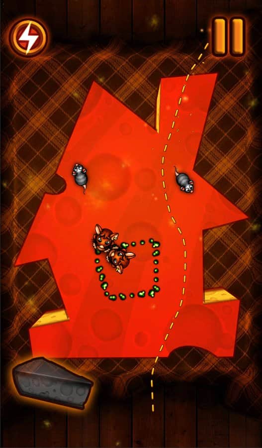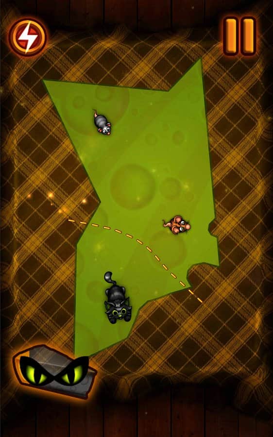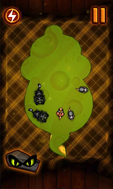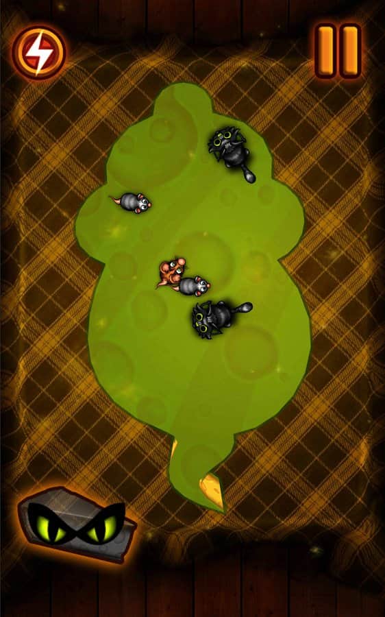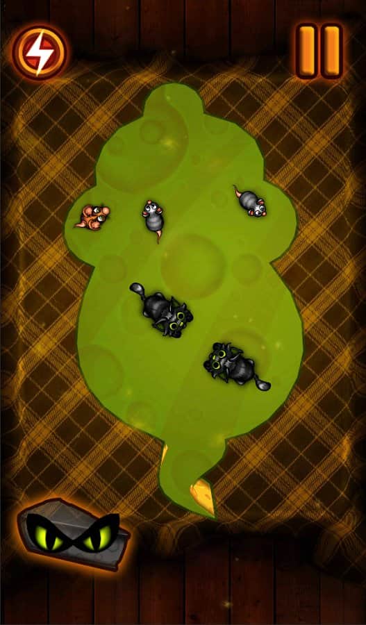 Slice The Cheese - увлекательная головоломка с популярной игровой механикой, красочной графикой и забавными персонажами. Вас ждет более 80 уровней каждый из которых представляет из себя огромный кусок сыра по которому беспрепятственно ползуют мыши, ваша задача при помощи свайпов по экрану отрезать куски сыра свободные от мышей, постепенно загоняя мелких созданий на меньшую территорию. Думаете это легко, тогда попробуйте унять непоседливых грызунов. По своему геймплею Slice The Cheese напоминает целый ряд популярных головоломок для Андроид, однако общее исполнение получилось на редкость оригинальным. Эта игра без сомнения придется по вкусу как детям так и их родителям.