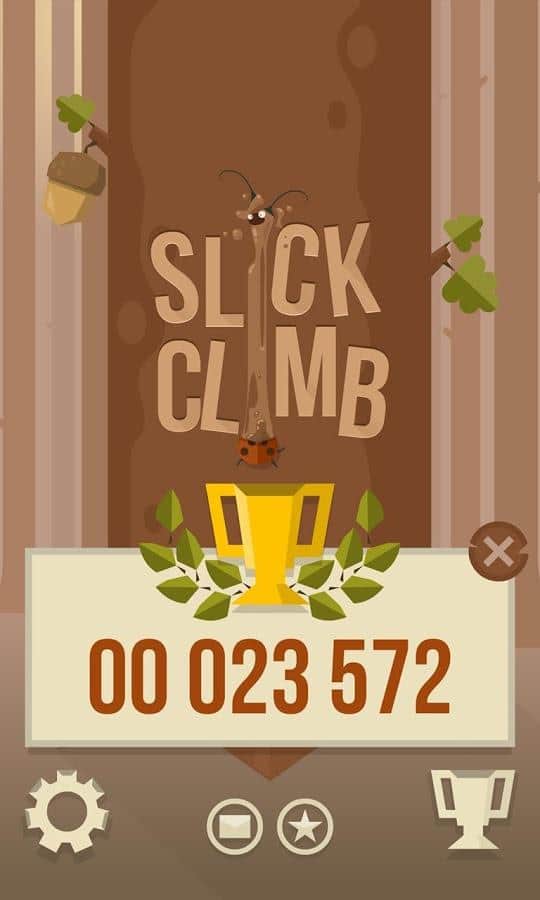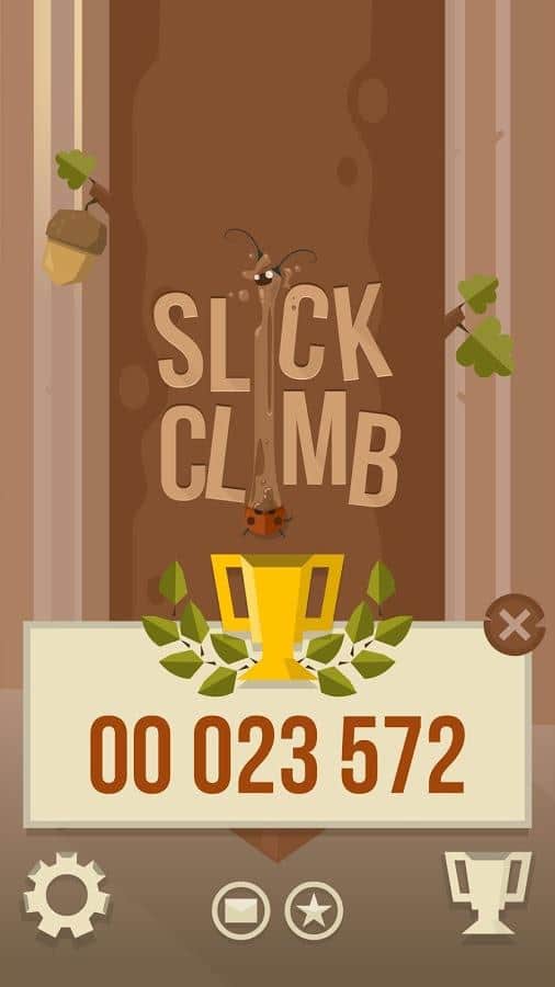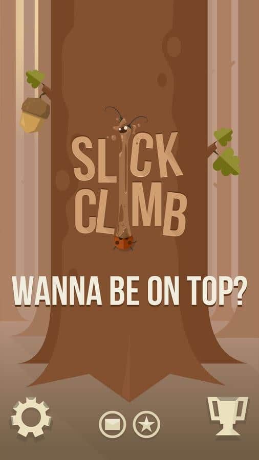 Slick Climb - Если вам нужно попросту убить некоторое время, то эта игра именно для вас! В этой игре вам предлагают забраться на очень высокое дерево, где полно злых маленьких зверушек и букашек, которые с легкостью помогут спуститься вниз самым коротким путем. тапайте пальцами по экрану и карабкайтесь вверх, по пути собирая жёлуди, что бы отбиваться от злобных белок. И не забывайте, что убрав пальцы с экрана, вы тут же полетите вниз =).