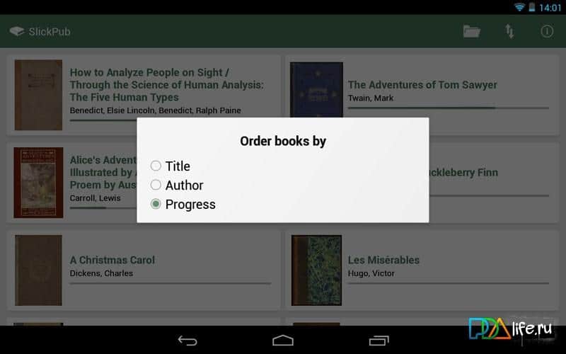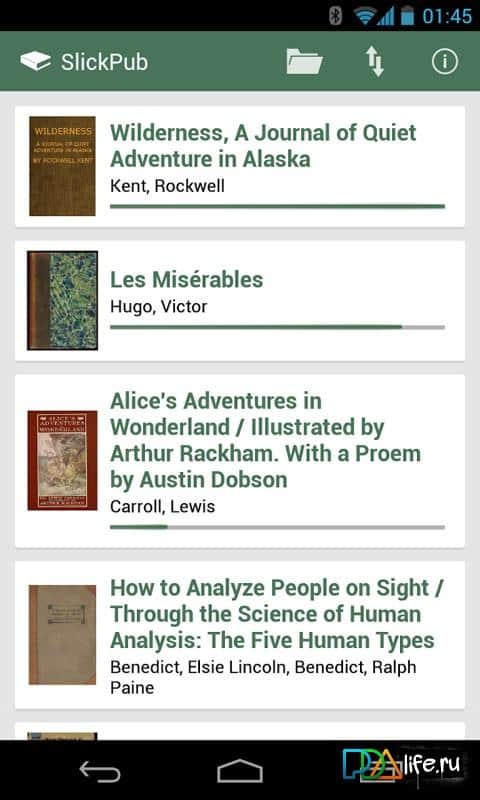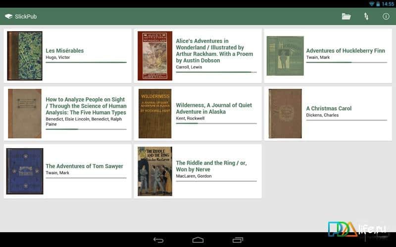 SlickPub - The EPUB Reader – предлагаем вашему вниманию приложение-читалку формата ePub с простым пользовательским интерфейсом, поддержкой образов и стилей, поиском полного текста в ваших электронных книгах, простым файловым браузером и пользовательскими закладками, не содержит сложных настроек. Скачиваем, устанавливаем и наслаждаемся чтением книг в любое удобное время.