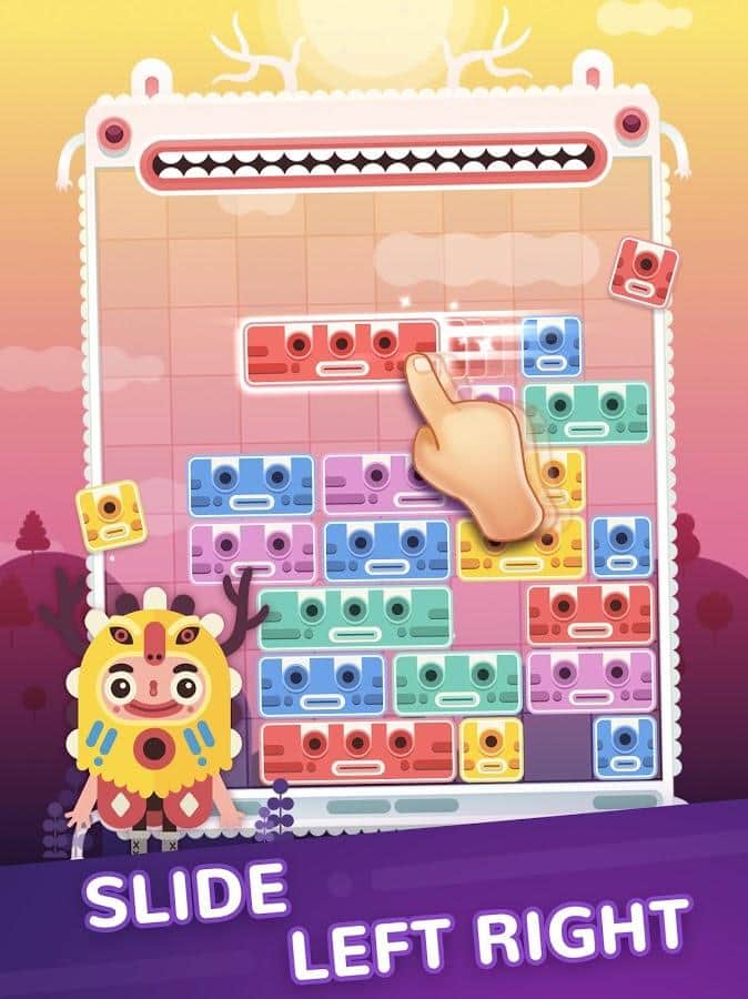 Slidey: Block Puzzle – отличная головоломка на андроид, с увлекательным и неповторимым геймплеем. В этой игре вашей главной задачей будет перемещать блоки по горизонтали и составлять их них ряды. Играйте в эту игру и тренируйте свою сообразительность и ум решая непростые задачи по перемещению блоков. Старайтесь составлять ряды как можно быстрее иначе блоками заполнится все игровое поле и вы проиграете. Набирайтесь опыта играя в игру и повышайте свой уровень симпатяги-шамана и получайте маски шамана и подарки. Игра также порадует игроков оригинальным саундтреком с фирменными звуковыми эффектами.