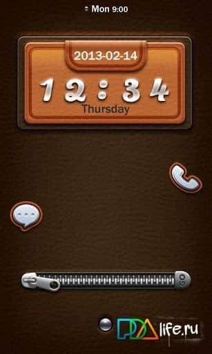 Slidezip GO Locker Theme – блокировщик экрана для андроид выполненный в кожаном стиле с такой же нашивкой, для отображения даты и времени, поверх основного слоя кожи. Для разблокирования экрана или приложений, вам необходимо расстегнуть молнию до характерного виброотклика.