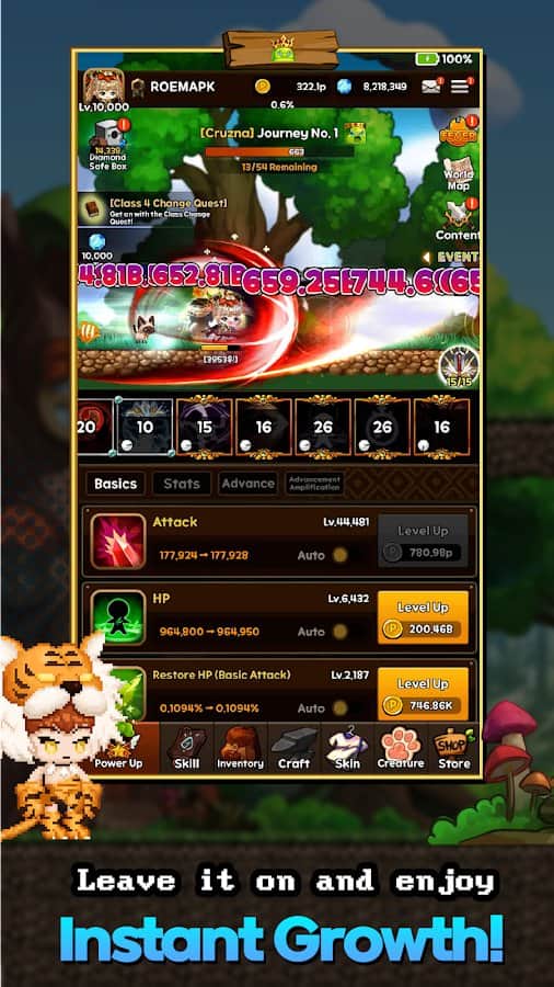 Slime Hunter: Idle Warrior - Создайте нового персонажа, улучшать которого сможете в процессе игры! Погрузитесь в бесконечное приключение и регулярно тренируйте главного героя, так как ему предстоит сражаться со слаймами и искать запечатанные реликвии в различных местах. Пробудите в себе больше 30 уникальных способностей, они помогут вам справиться во время сражений и продержаться как можно дольше. Быстро развивайтесь, получайте важные вознаграждения за собственные заслуги, вытворяйте удивительные трюки и избавьтесь навсегда от противников.
