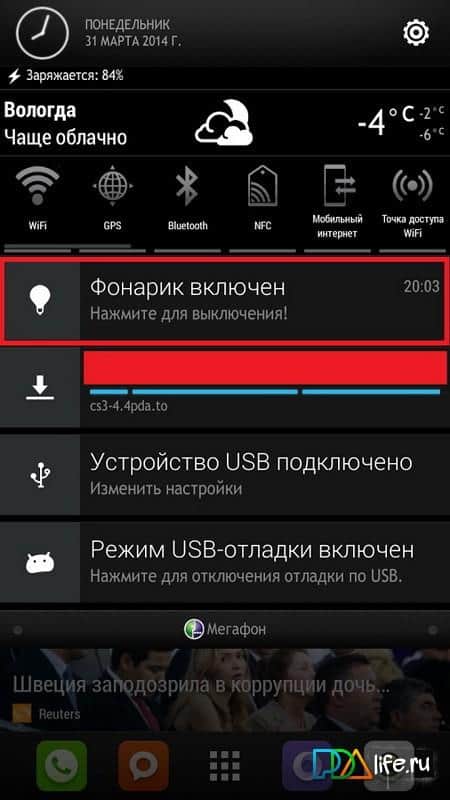 Ну а чтобы активировать фонарик - просто удерживайте лампочку пару секунд, просматривая при этом красивейшую анимацию.