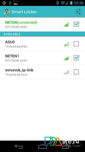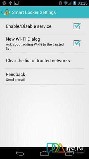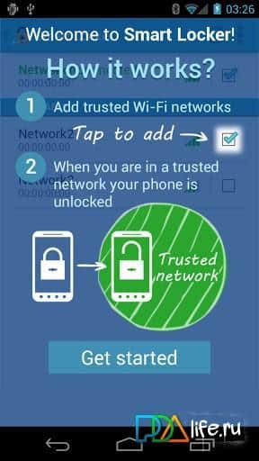 Smart Locker - это приложение на андроид, котороая отключает блокировку телефона или включает её основываясь на данных wi-fi точек. Как это работает? Всё просто, вы у себя дома, обозначаете вашу сеть как безопасную, а рабочую сеть как опасную. Когда вы приходите на работу телефон определяет, что эта сеть чужая и блокирует телефон, что-бы лишние глаза не смогли увидеть в нём конфиденциальную информацию. Приходя домой телефон разблокируется. При покидании Wi-Fi сети приложение восстанавливает обычные функции приватности.