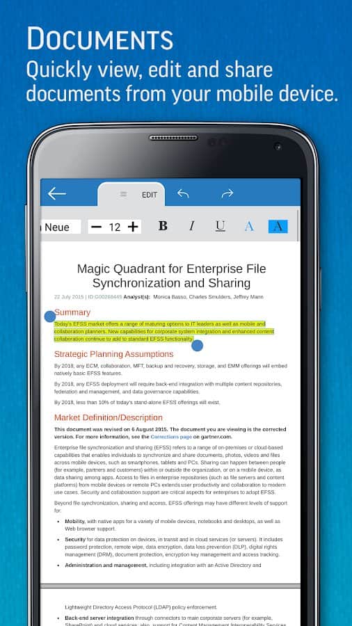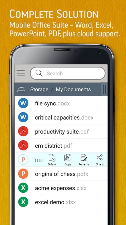 Smart Office 2 – лучший офис для андроид от разработчика Picsel. Программа позволяет вам просматривать страницы документа в объеме (удобно сделана функция листания страниц), содержит большое количество шаблонов для новых документов, поддерживает Dropbox, Google Docs и многое другое. Вас порадует приятный интерфейс и удивит скорость работы Smart Office 2.