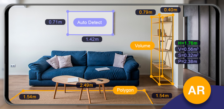 Тут точность измерений сильно зависит от возможностей вашего устройства. Если в телефоне есть сенсор глубины, он строит карту глубины сцены. Тогда смартфон превращается в довольно удобную короткую рулетку: измерить проём двери, ширину стола или расстояние до стены уже можно вполне уверенно.