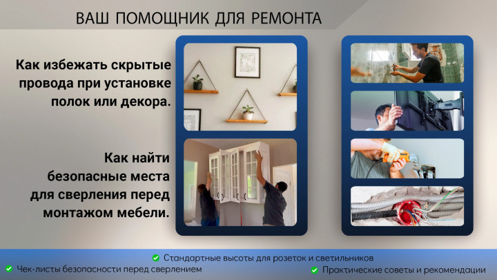 Смартфон не видит сквозь стены, но магнитометр реагирует на металлические предметы. Приложения-детекторы отслеживают изменение магнитного поля при движении вдоль поверхности. Иногда это действительно помогает найти профиль гипсокартона, саморезы или металлические элементы перед сверлением. Но глубоко заложенную арматуру или проводку он обнаруживает нестабильно. Поэтому результат — это подсказка, а не карта коммуникаций. Сверло лучше всё равно держать с осторожностью. Приложения ищем по запросам “Детектор проводки” или “Металлодетектор”.