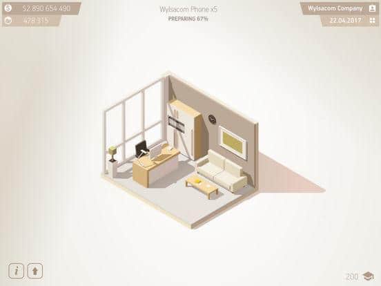 Smartphone Tycoon Inc. – отличный симулятор для IOS, где вы будете управлять своей компанией по производству смартфонов. В этой игре вы станете владельцем компании, которая производит самые новые и современные смартфоны в мире. Создавайте свои смартфоны изучая новые технологии и контролируя рынок. Придувайте и создавайте с нуля свои телефоны и продавайте их благодарным покупателям. Заполучите огромную команду фанатов своих смартфонов и создавайте все новые и продвинутые телефоны. Получайте отличный доход от продажи телефонов и улучшайте и расширяйте свою компанию.