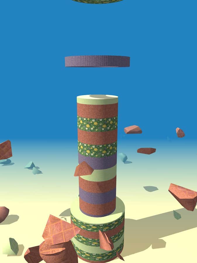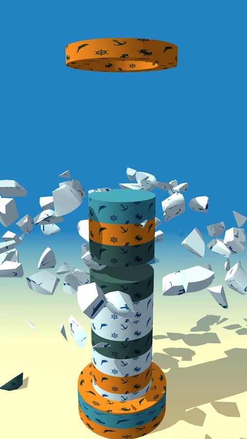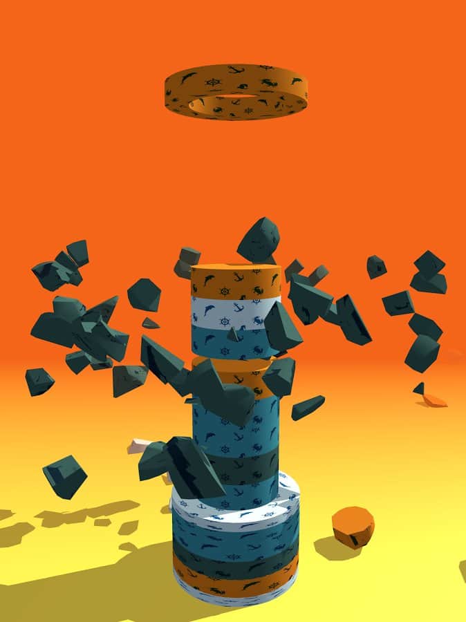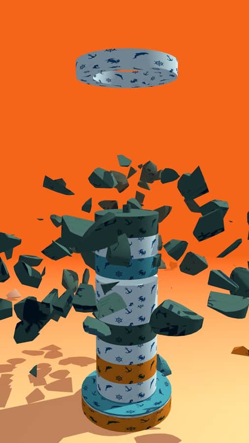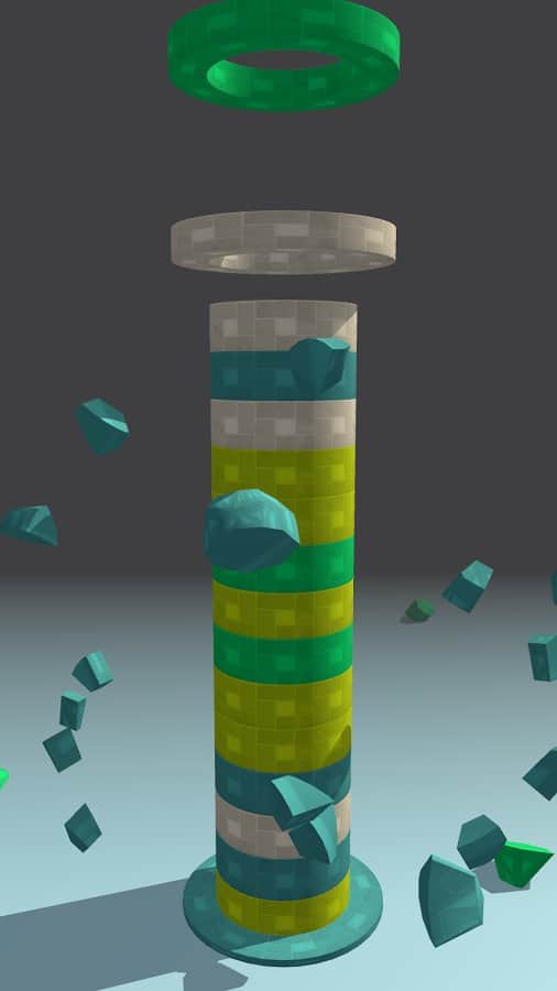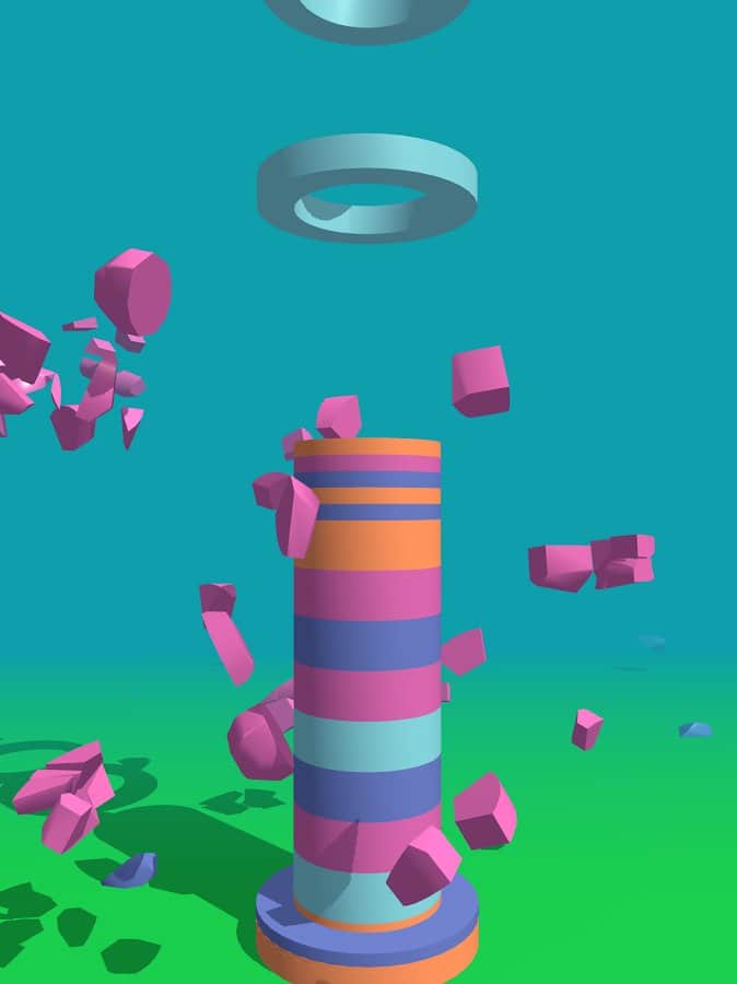 Smash Rings – тайм-киллер на андроид, где вы будете разрушать башню. Вся башня в этой игре состоит из сегментов разных цветов, кольца падающие сверху будут одеваться на башню и вашей задачей будет нажимать на экран своего телефона когда кольцо подходящее по цвету достигнет сегмента башни. Как только вы это сделаете, сегмент башни разрушится и башня уменьшится в размерах. Подбирайте правильный момент для касания экрана, иначе кольца заполнят башню и не дадут вам пройти уровень. Тренируйте свою реакцию и скорость пальцев и нажимайте на экран в нужный момент. Устанавливайте рекорд в этой игре и соревнуйтесь с другими игроками.