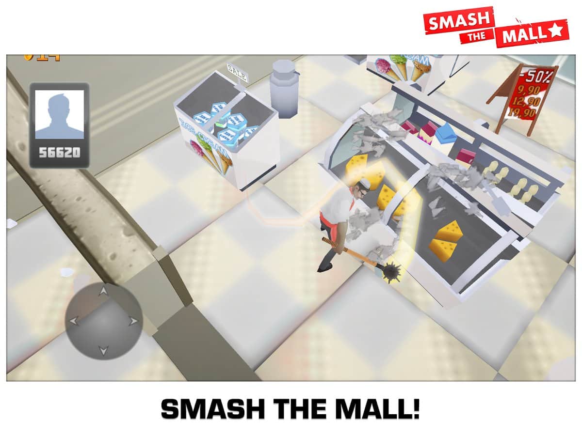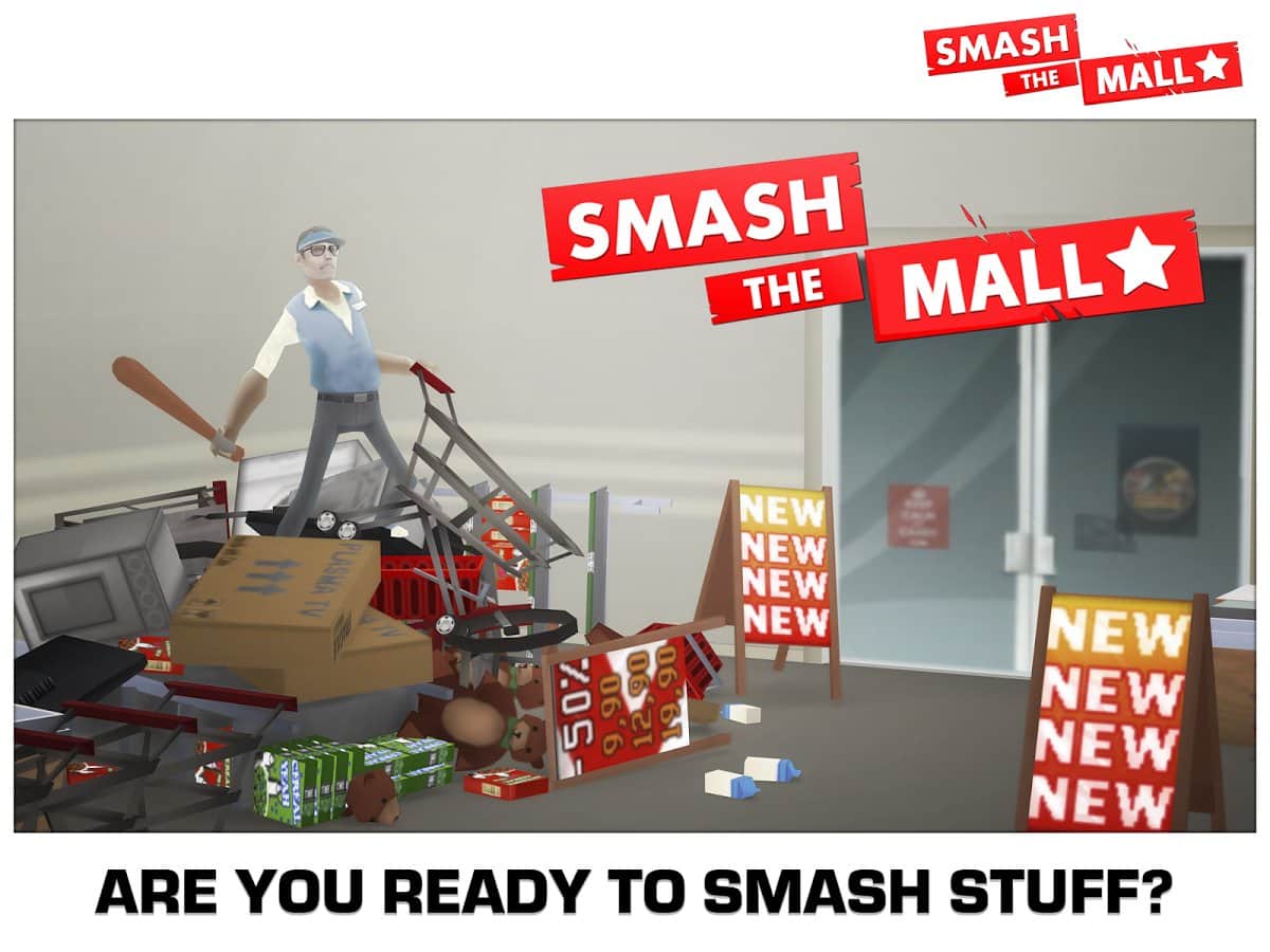 Smash the Mall - Anti-stress! - Если вам всё надоело, если вас достали, просто запустите эту игру, крошите и ломайте всё что встанет у вас на пути. Здесь нет смысла, и нет правил, единственное что вы должны сделать это сломать, всё что попадется вам под руку. Так же вы сможете улучшить свое оборудование, и ломать ещё больше! Если хотите снять стресс, больше не нужно бить дома посуду, или пинать кошку, просто заходите в эту игру, и выплескивайте свой гнев. Только не сломайте пальцами экран!