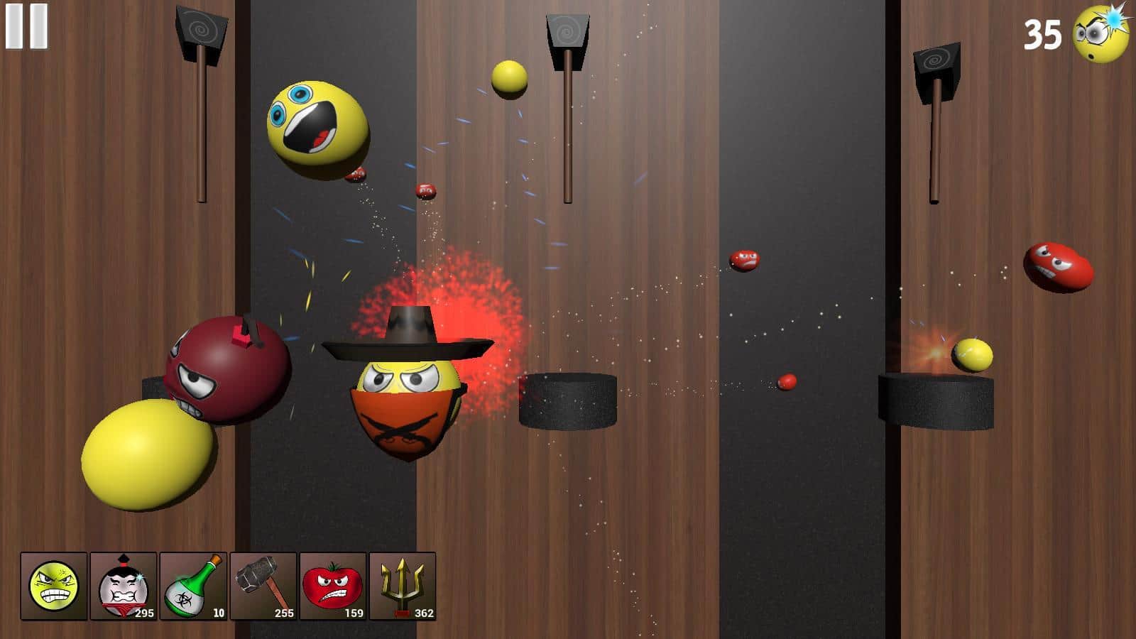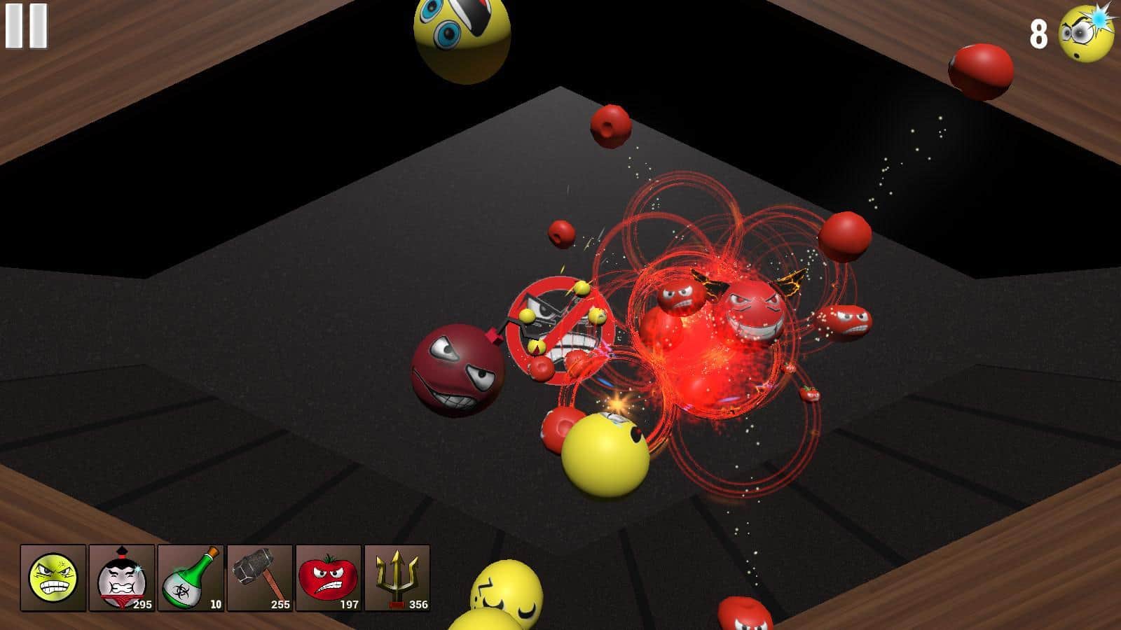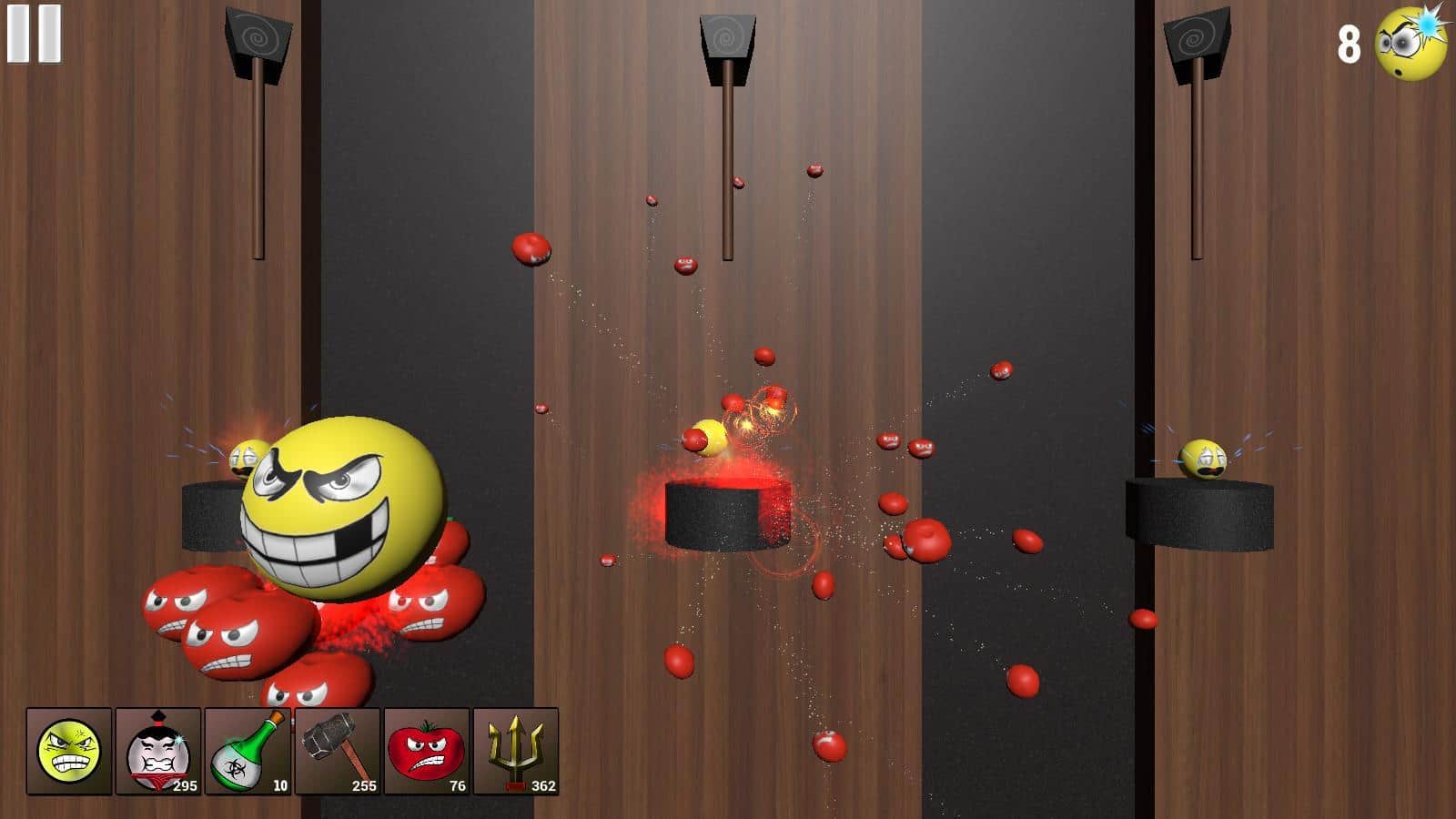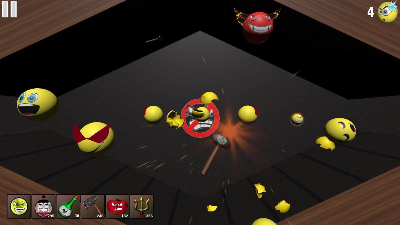 Smash The Smile – я думаю ни кто из вас не догадывался, что делают смайлики, в то время, когда их не используют пользователи для написания каких либо текстов. В игре вы наглядно увидите что делают весёлые и не очень смайлики пока ни кто не пишет сообщения. В начале игры у вас будет только один вид смайлов, постепенно их количество будет увеличиваться а играть от этого становится только интереснее. В игре каждый смайлик уникален, и по своему реагирует на различные внешние воздействие. В игре три различных режима (обычный, усложнённый и головокружительный), попробуйте их все и узнайте что такое настоящее веселье.