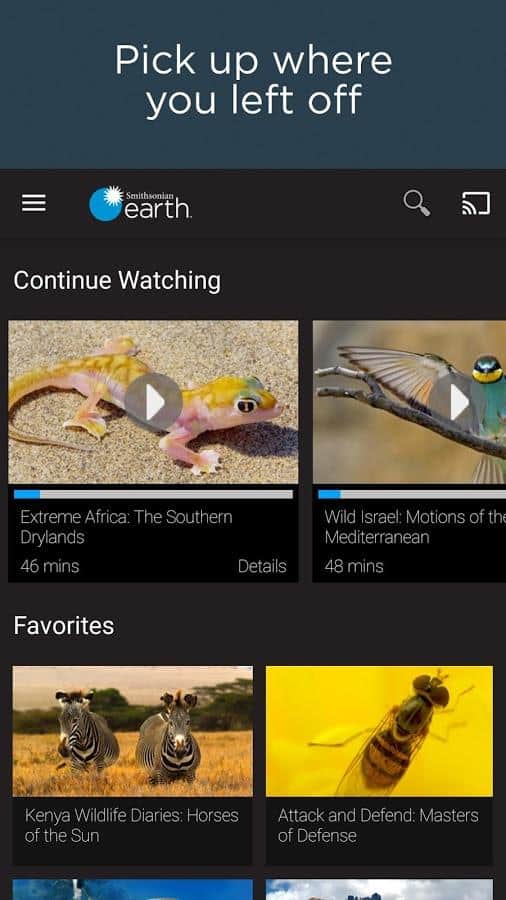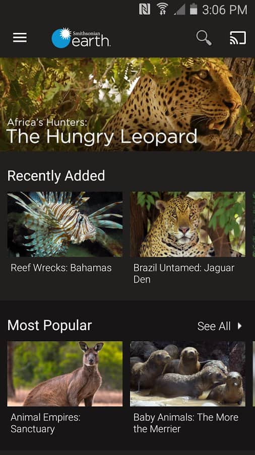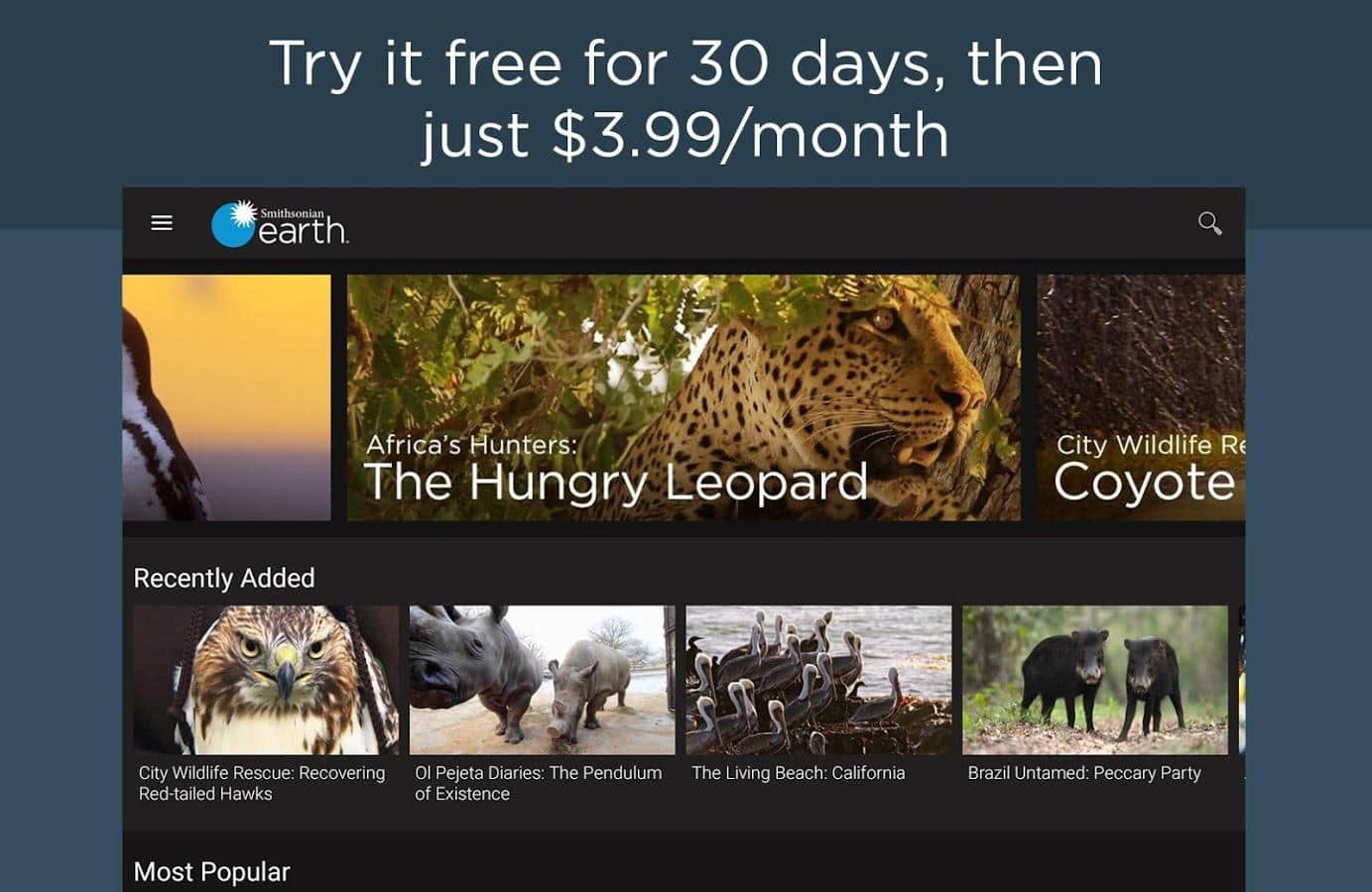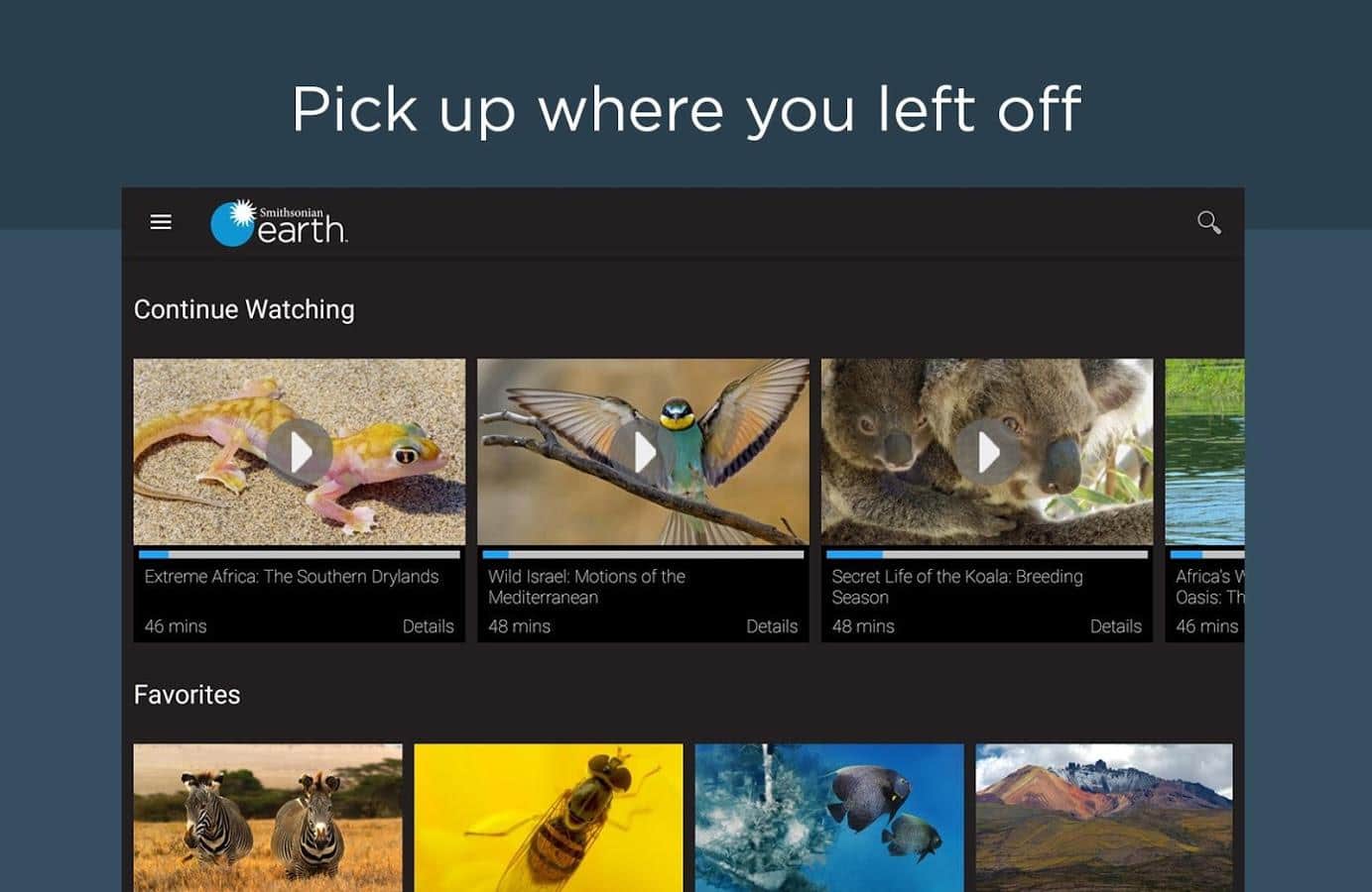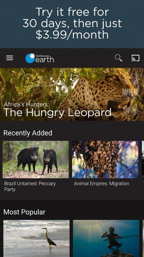 Smithsonian Earth - Любите каналы про животных? Тогда вам определенно понравиться приложение с помощью которого вы сможете исследовать мир животных не выходя из дома. Здесь собраны и показаны записи со всех уголков мира и со всеми возможными животными. Все это собрано в удобные списки, поделено на категории и многое другое. Окунитесь в мир неизведанного и узнайте для себя что-то новое.