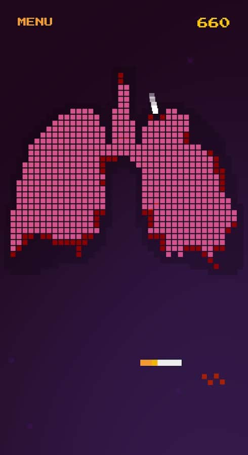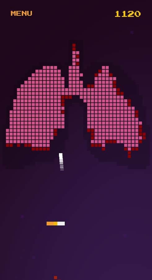 Smokers Hell -простая игра арканоид – занимательная игра на андроид, созданная для акции ЗОЖ. В этом минималистичном арканоиде вашей задачей будет с помощью сигареты разрушать легкие. Перемещайте сигарету влево и вправо и уничтожайте блоки из которых состоят легкие. Проходите уровни как можно быстрее и наблюдайте как быстро разрушается орган человека от курения. Эта игра была создана для того чтобы мотивировать людей бросить курить или не дать им начать это делать. Курение – убивает и вы это сможете наглядно наблюдать в этой игре.