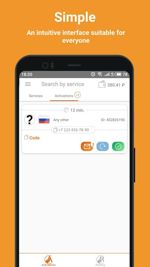 Приложение SMS-Activate позволяет пользоваться регистрацией в любых веб-сервисах и активировать свой аккаунт при помощи виртуальных номеров с приемом SMS - сообщений.
