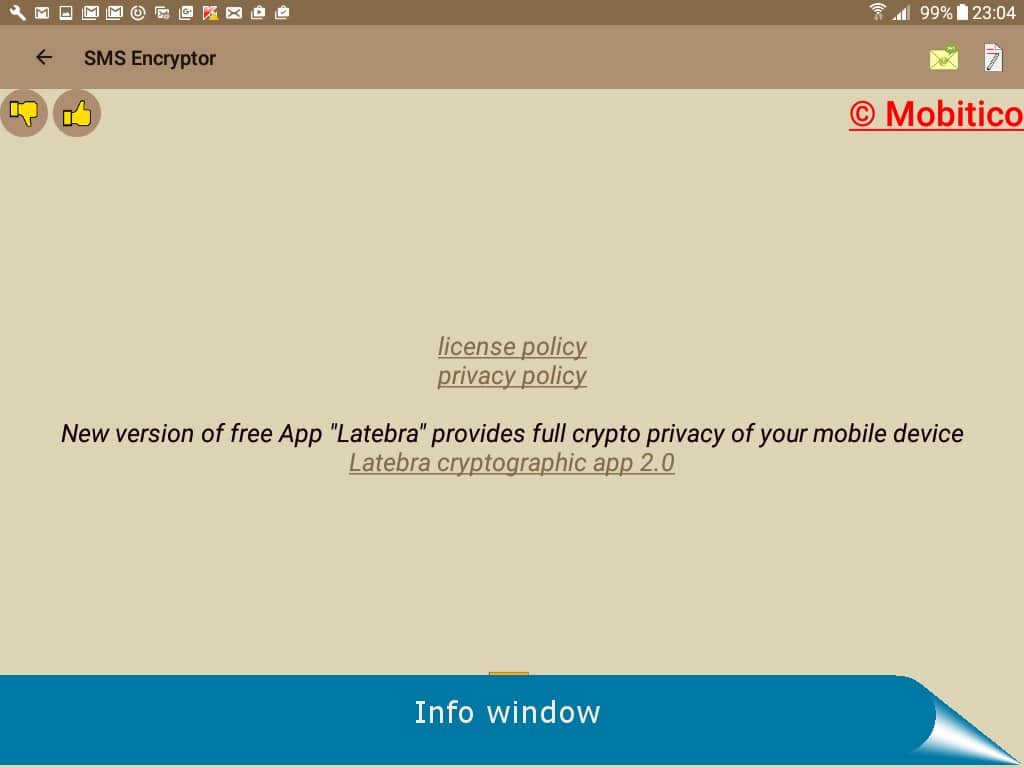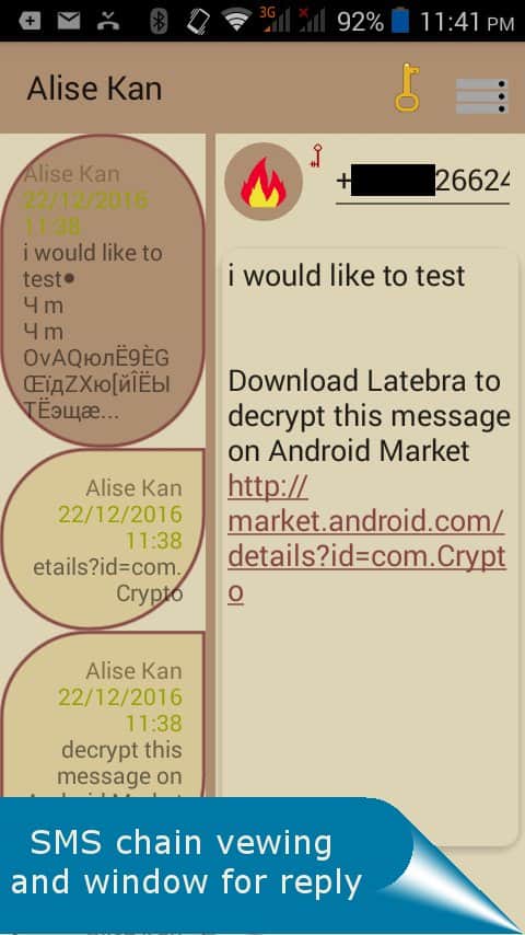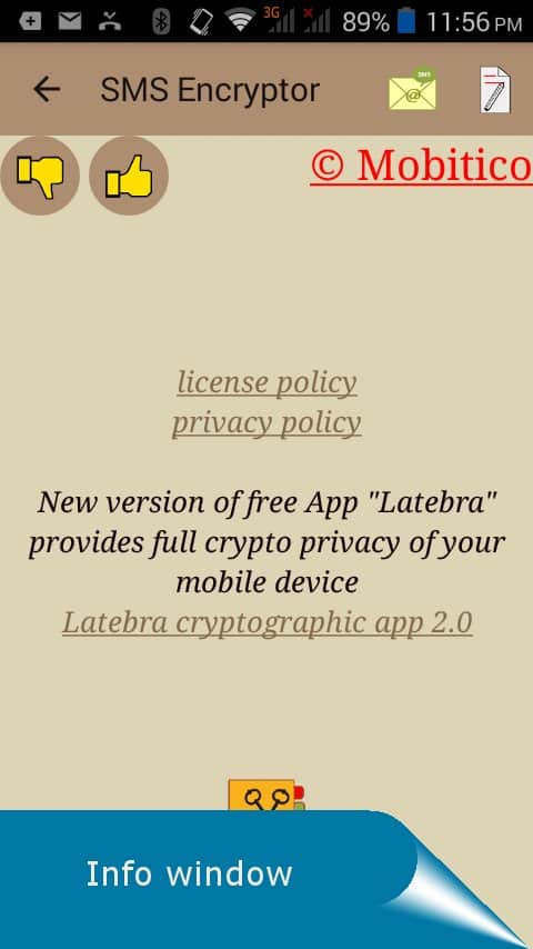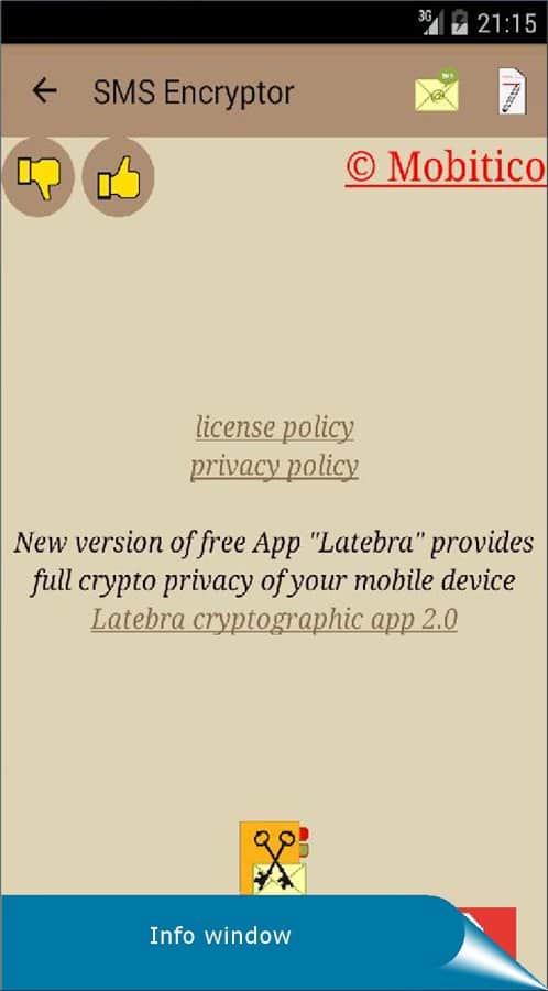 SMS Encryptor - Боитесь что кто-то сможет прочитать ваши смс? Тогда это приложение поможет вам обезопасить себя. Это приложение создает крипто-ключ при помощи которого адресат сможет открыть само сообщение. Для того что бы вам было удобнее разработчики сделали собственный клиент для сообщений, он очень простой и удобный, имеет гибкий интерфейс и списки контактов.