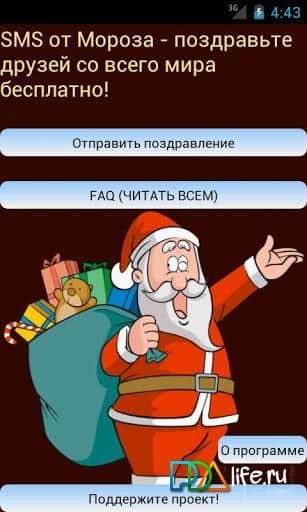 SMS от Мороза Worldwide – чудеса сбываются на андроид! Продолжаем готовимся к Новому Году, скачиваем и устанавливаем прогу для бесплатной отправки SMS от имени Деда Мороза. Теперь у вас есть возможность поздравить всех своих друзей и родственников с Новым Годом абсолютно бесплатно без каких либо затрат. Текст поздравления будет содержать не более 70 символов.