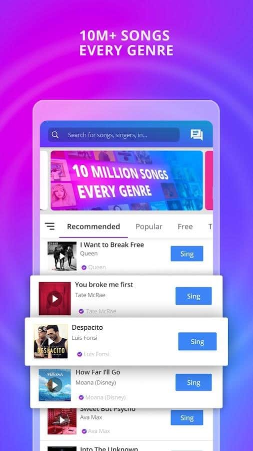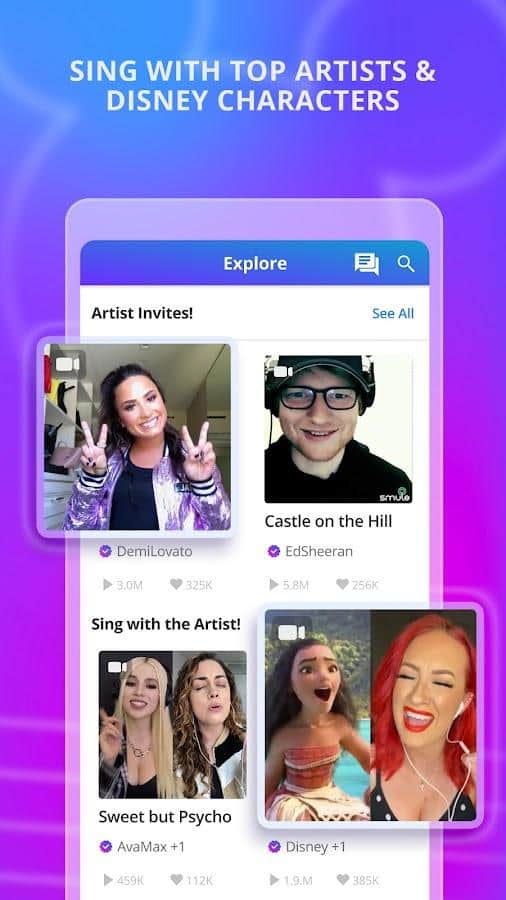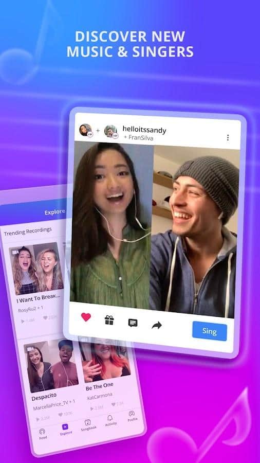 Smule - прочувствуйте такт музыки и отдайтесь ритму вместе с другими людьми, включая профессионалов! Больше 10 миллионов песен на выбор, которые вы можете спеть в режиме караоке, а затем поделиться видео. Просматривайте чужие ролики, подбирайте больше песен, постепенно учитесь петь лучше и создавайте прямые эфиры, чтобы показать на что способен ваш голос. Сделайте свои записи уникальнее и заметнее с помощью специальных эффектов голоса, визуальности, фильтров и прочего. Находитесь в среде любителей музыки!