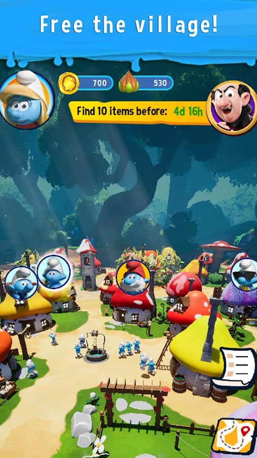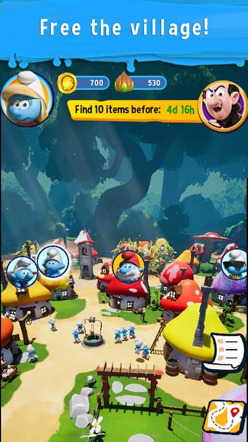 Исследование: выполняйте задания от других смурфов, исследуйте лес и разыскивайте своих друзей.
