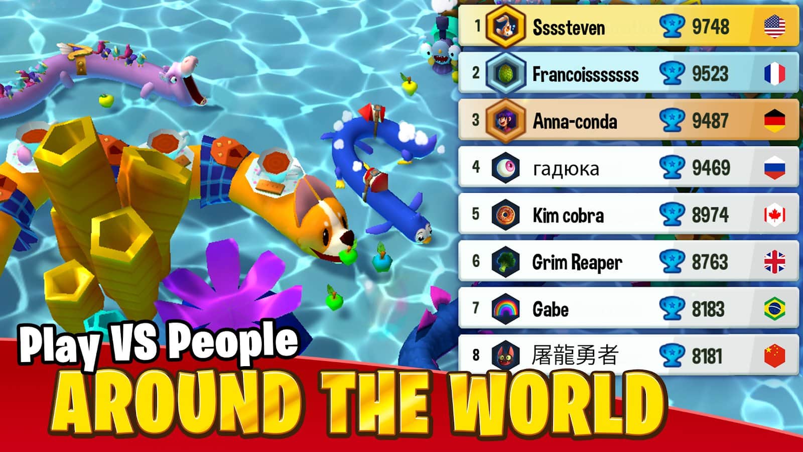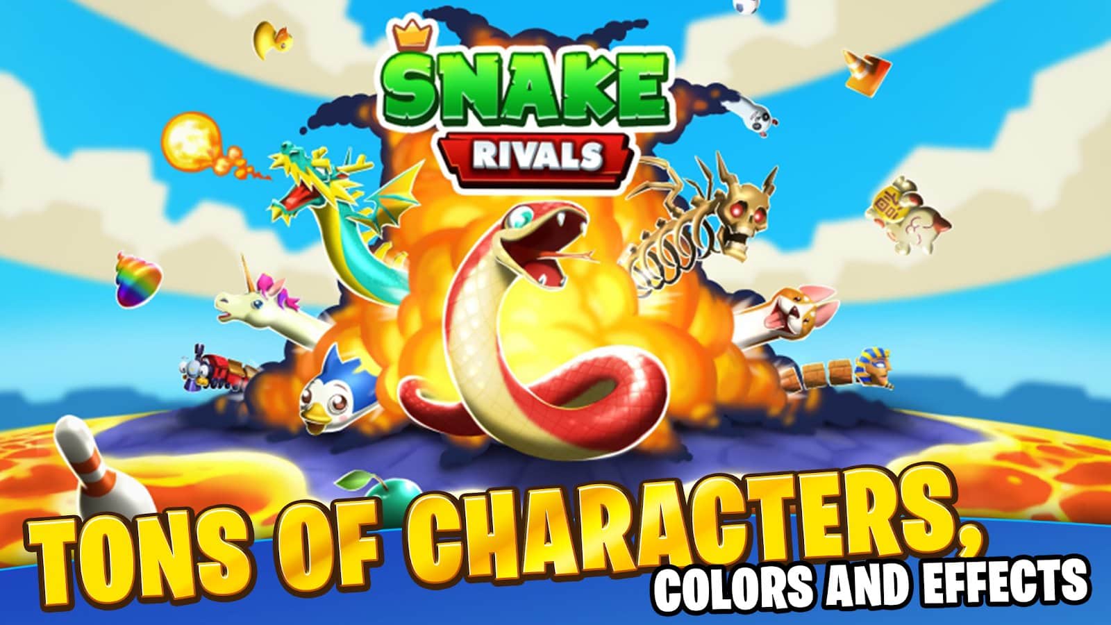 Snake Rivals - многопользовательская онлайн игра на Android с несколькими PvP режимами: Королевская битва, Классика и Золотая лихорадка. Играйте с друзьями или в одиночку, участвуйте в эпических битвах и поборитесь за звание легендарного победителя Королевской битвы, или расслабьтесь, поработайте над своей тактикой и выполняйте полезные задания в Классическом режиме. Изменяйте свою змею, выигрывая награды в еженедельных испытаниях, повышайте уровень и соревнуйтесь с игроками со всего мира или друзьями дома.