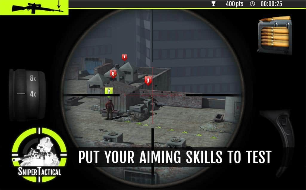 Sniper Tactical - Вы никогда не представляли, что в симулятор снайпера можно играть толпой? Тогда эта игра на андроид предоставит вам эту возможность! Вам предстоит сразится с другими игроками в режиме мультиплеера, а также покупать амуницию и оружие. Но некоторым игрокам понравится другое – эффект полета пули, и момент соприкосновения ее с телом.