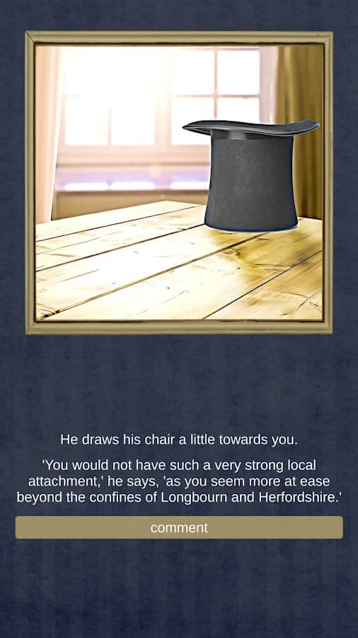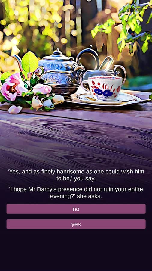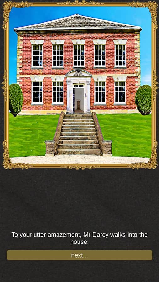 Snog Darcy – интерактивная игра на андроид, адаптация обожаемого всеми романа Джейн Остин «Гордость и предубеждение». В этой игре вы будете выступать в роли главной героини которая является очень смелой и гордой. В ваш округ приехал новый мужчина мистер Дарси, с которым вы будете вести диалоги. Через разветвленные диалоги и интерактивную игру вы погрузитесь в мир ухаживаний, романтических отношений, а также драмы и игровых развлечений. Эта игра порадует игроков красноречивой прозой и запоминающейся музыкой где героиня будет находить и терять свою любовь.