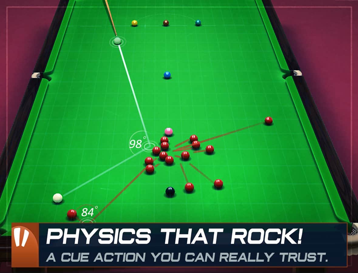 Snooker Stars - Вас ждет встреча с настоящими мировыми звездами снукера. Теперь и вы, сможете играть на ровне со всеми ими, создав своего собственного персонажа, вы вступите на долгий и сложный путь игрока в снукер. В игре есть несколько режимов, если хотите можете принять участие в настоящей игре за кубок, или же устроить партию с одним из игроков, а если нужно просто научится, то режим тренировки создан для вас. Так же перед игрой стоит выучить хотя бы элементарные правила снукера, ведь они отличаются от правил обычной игры в бильярд.