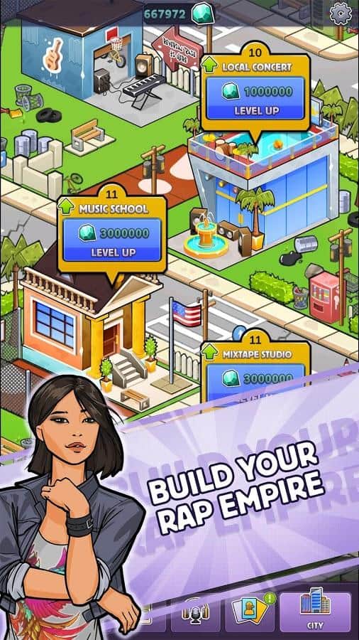 Snoop Dogg's Rap Empire – вы готовы отправиться в незабываемое приключение по миру музыки? Начните свою карьеру рэпера и продвиньтесь от никому неизвестного музыканта до популярного и любимого всеми фаворита, сочиняйте рэп, участвуйте в баттлах, не сдавайтесь после первых неудач и упорно шагайте к успеху. Познакомьтесь со Snoop Dogg и под его руководством продвигайтесь по карьерной лестнице. Покоряйте мировые чарты. Разблокируйте доступ в крутейший студии города, записывайте свои треки и завоюйте доверие фанатов.